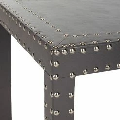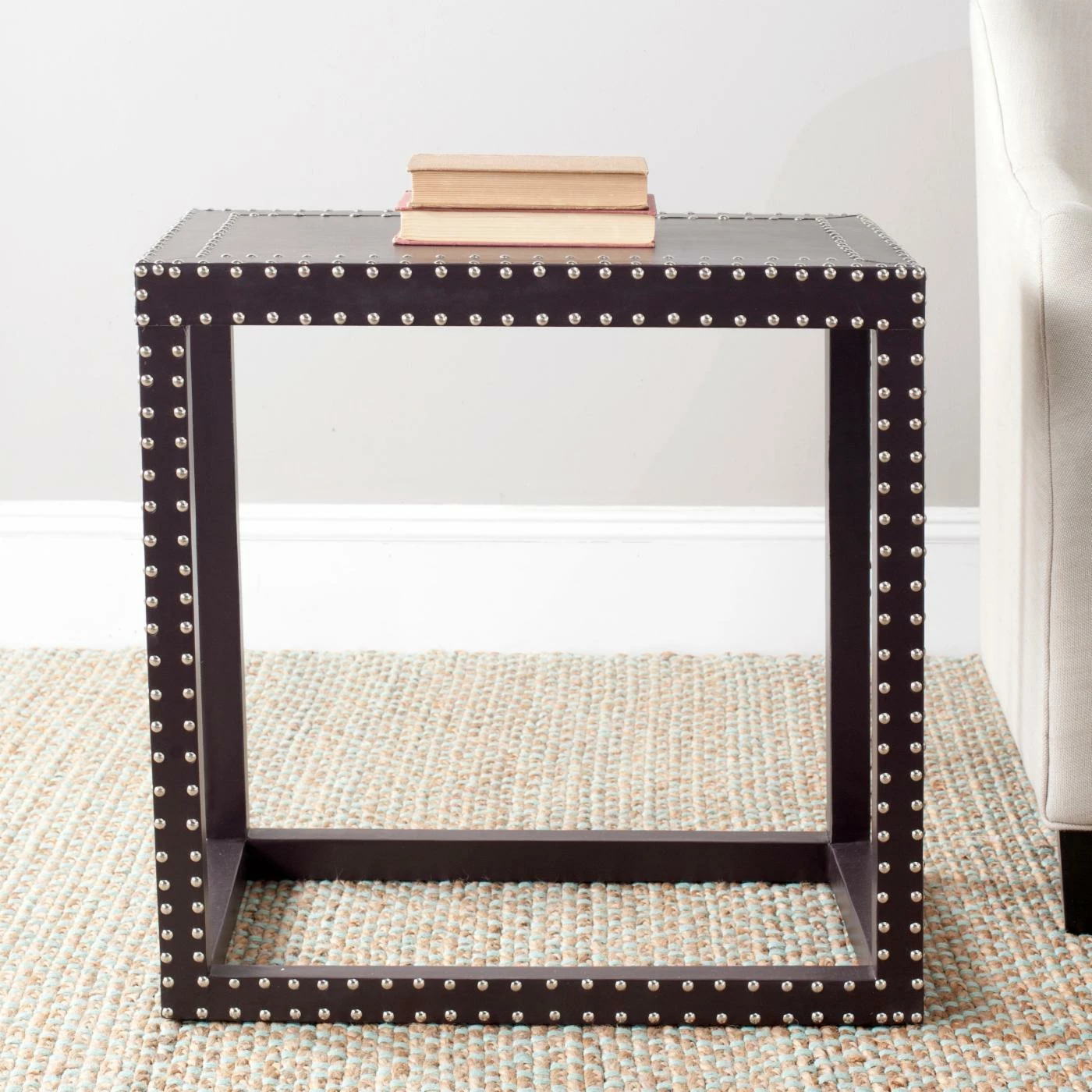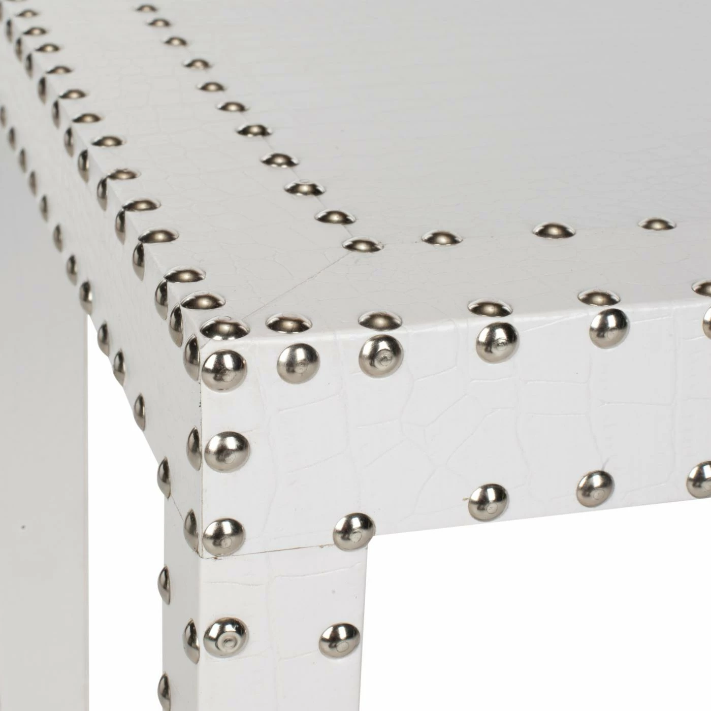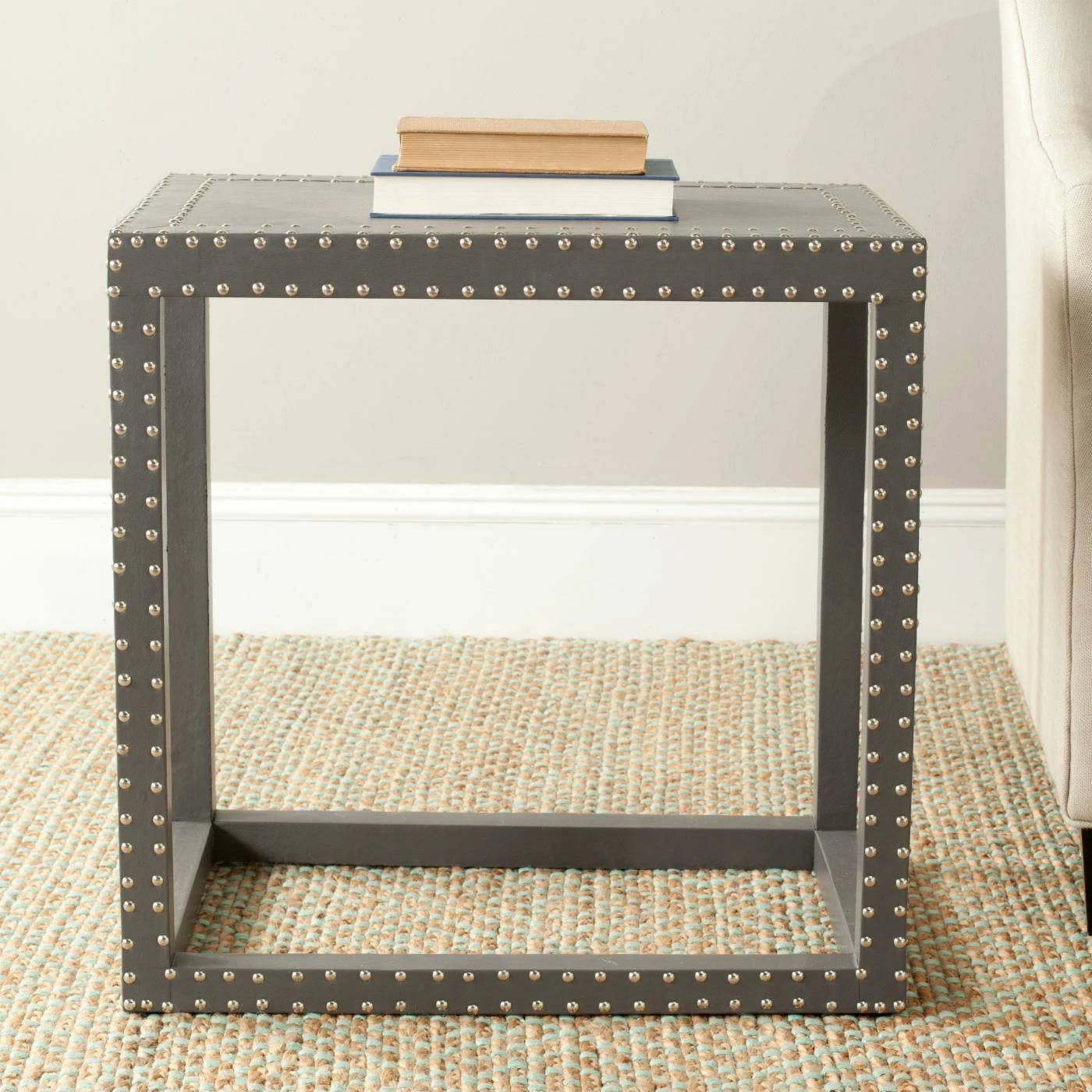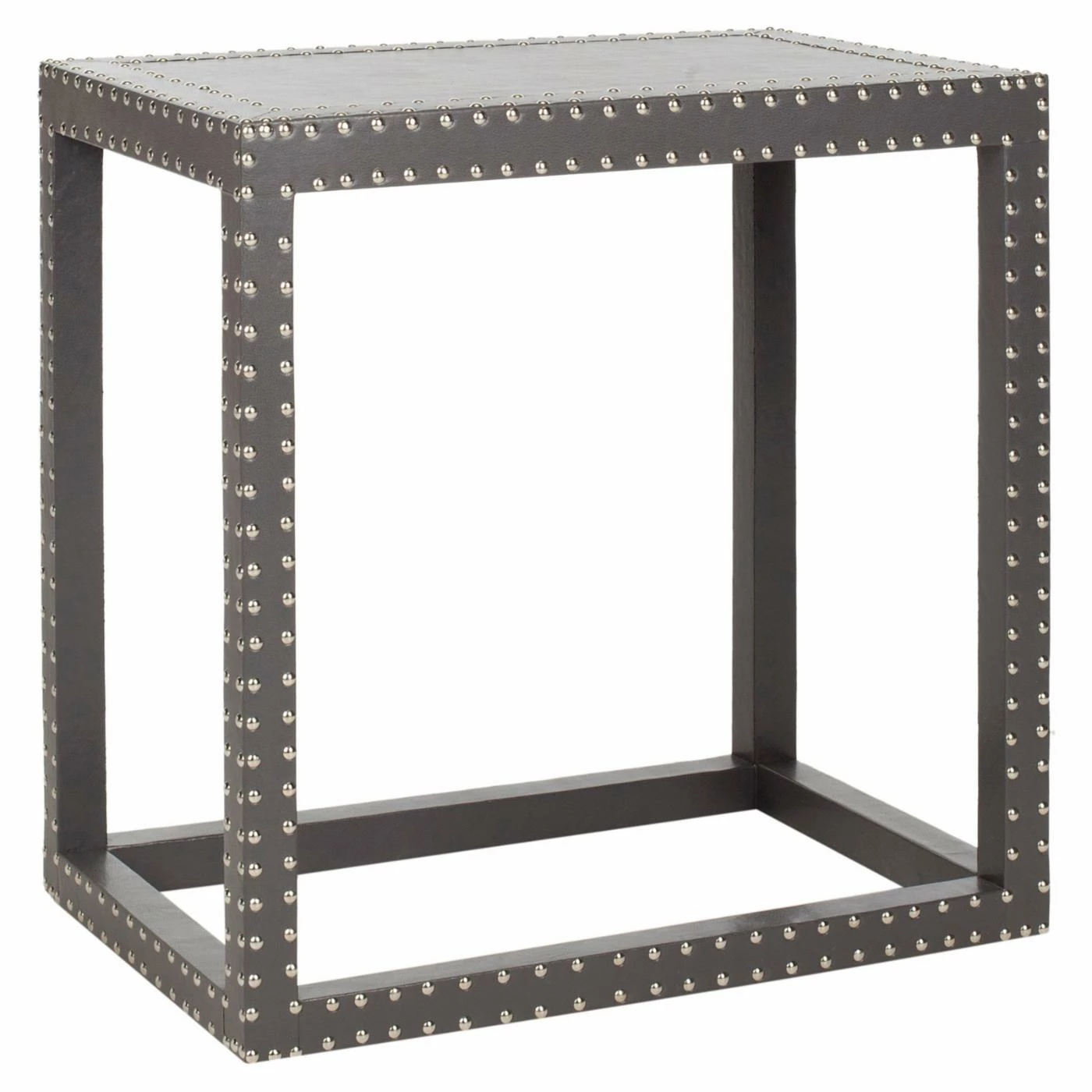 The sleek, modern design of the Safavieh Lena End Table is all about the details. The faux-leather look of the durable metal design is certain to provide a luxurious appeal to your home. The nail head detail and open-frame style are surefire hits in any room. Available in Charcoal, Grey, Light Green, or White Croc finishes