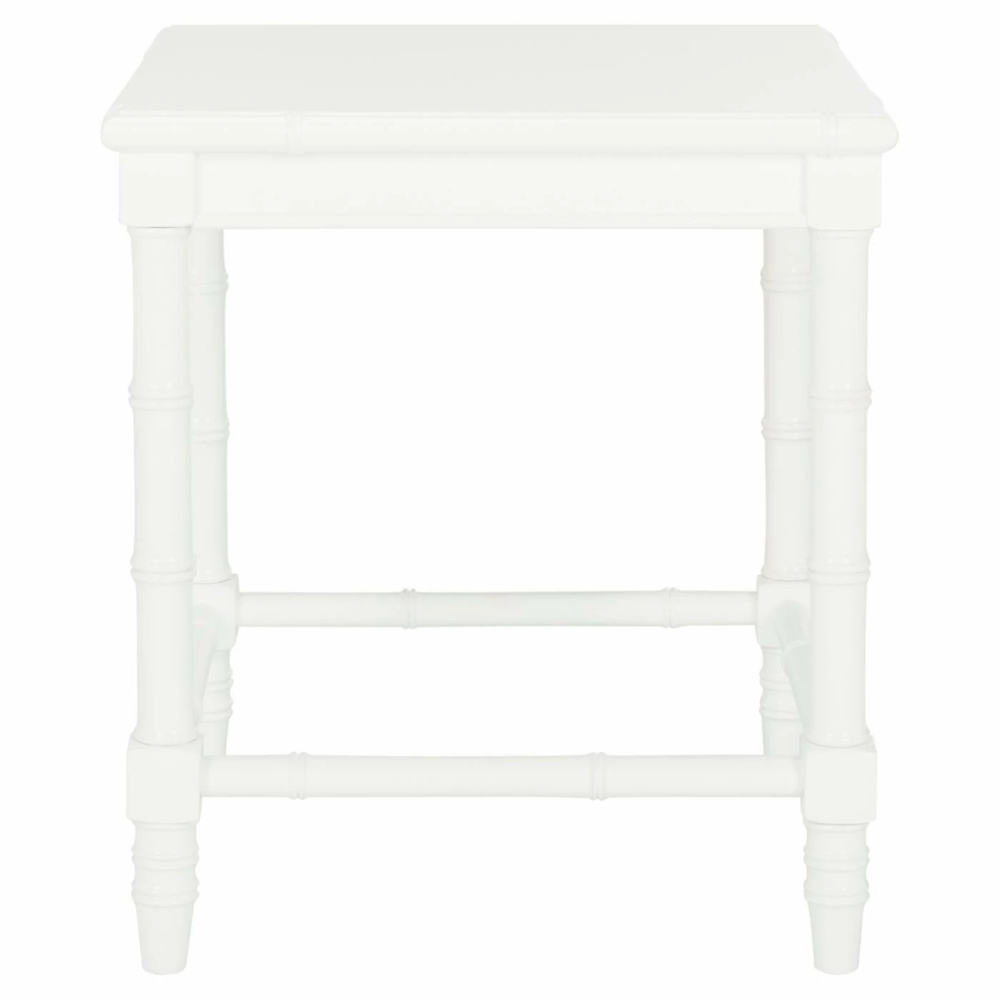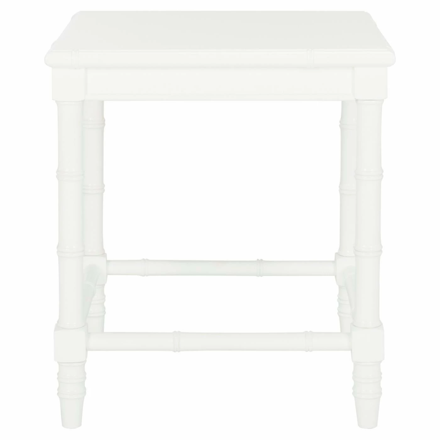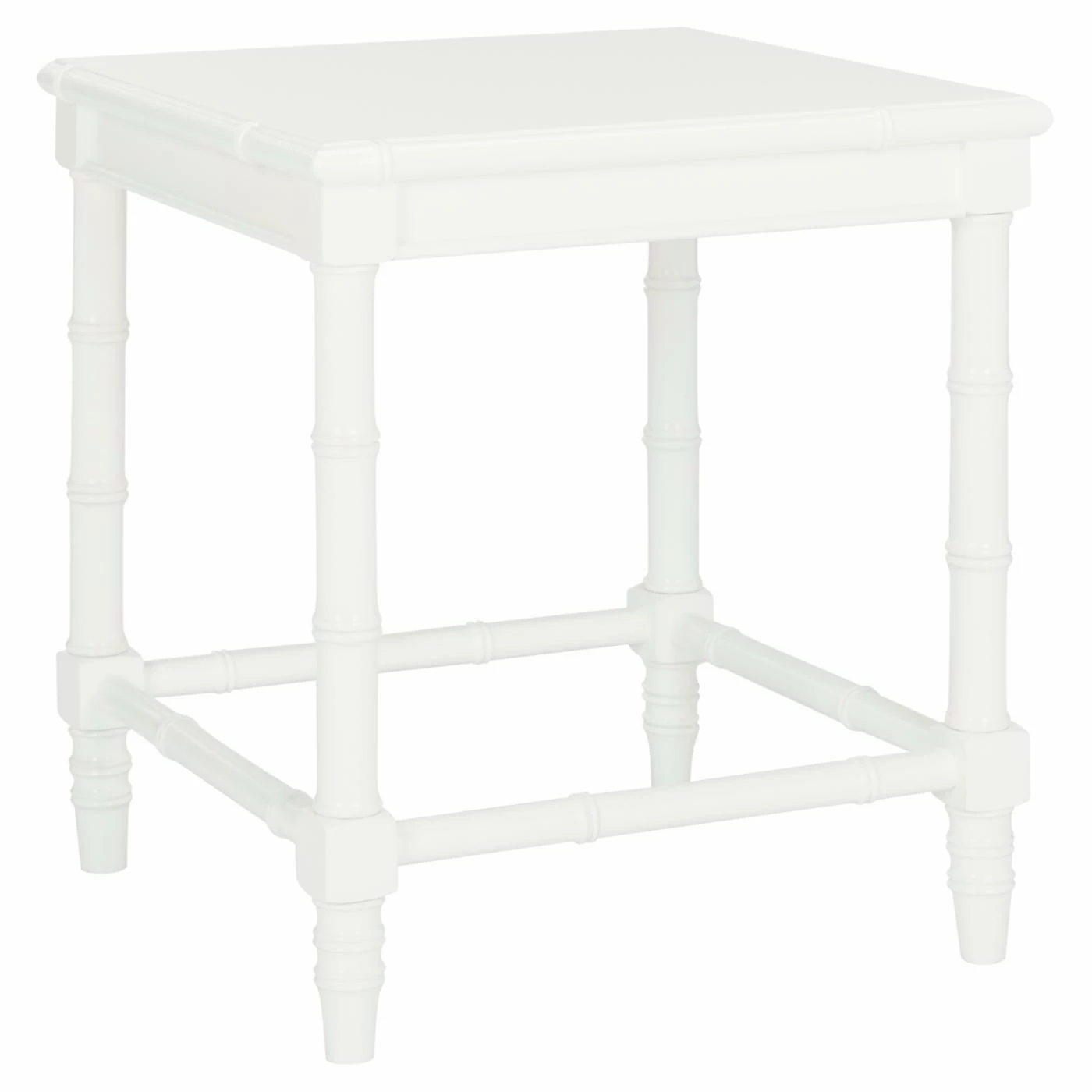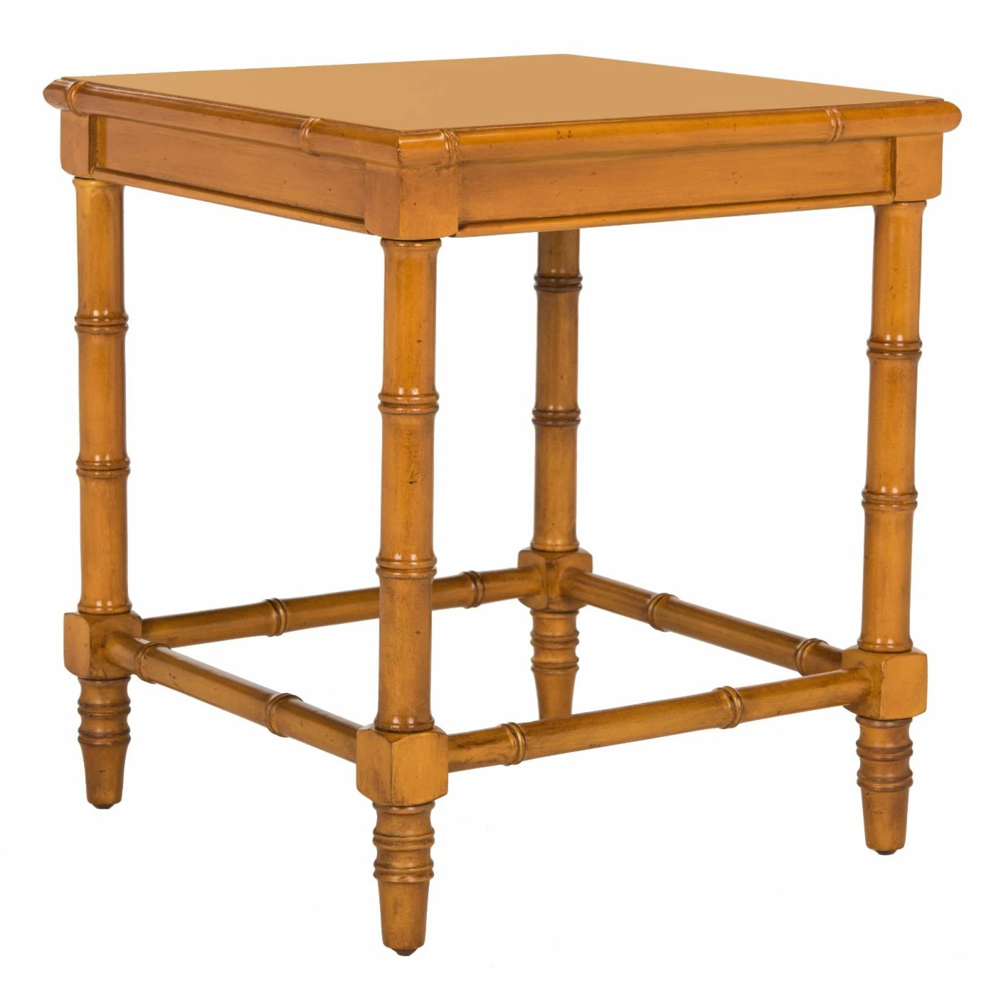 The Safavieh Liviah 22 in. Bamboo Accent Table is sure to hit it off with your favorite chair. Bamboo-textured legs and stretchers infuse a touch of tropical breeziness. Settle a lamp, plants, or photos on the square top. Glossy finishes create a luxurious, polished look.