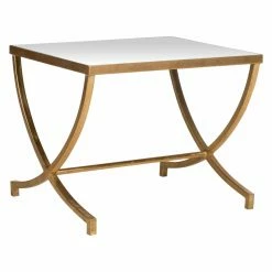 Somewhere between classic Greek elements and old Hollywood glamour lies the Safavieh Maureen Accent Table – Gold/Mirror Top. This beauty is perfectly at home in your bedroom or living room, and adds an elegant aesthetic to either one. The glass top cradles your favorite book or accessories, while the sweeping curves of the gold-finish metal base provides the perfect touch of opulence.