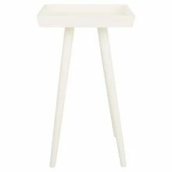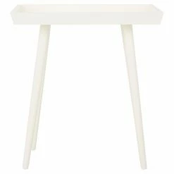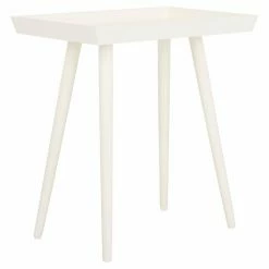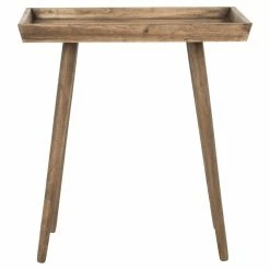 Inspired by the comfortable simplicity of a Finnish fishing cottage, the Safavieh Nonie Tray Accent Table takes a pure, sleek approach. The form is utterly simple, with angled, tapered legs supporting a rectangular tray top. Water-based stains bring out the natural appeal of pine wood. This piece also contains environmentally friendly engineered wood.