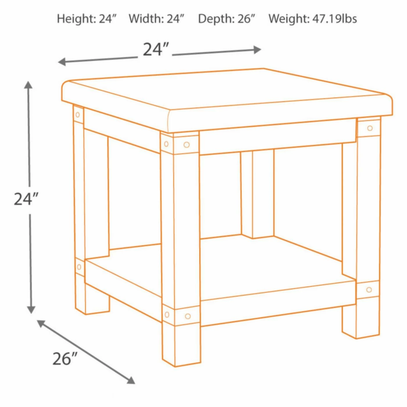 - Dimensions: 24W x 26D x 24H in.
