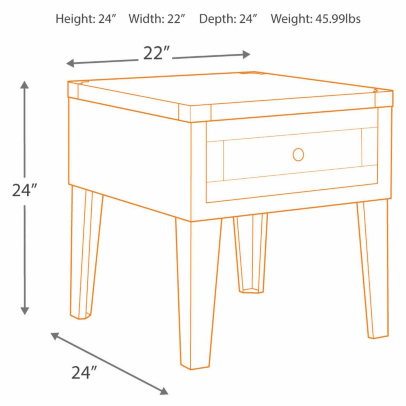 - Dimensions: 22W x 24D x 24H in.