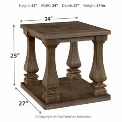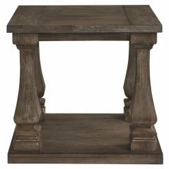Always have a place to set your drink when you decorate your living room with the Signature Design by Ashley Johnelle End Table. This square end table features chunky, detailed legs that extend from the lower shelf to the plank-style top. A distressed gray finish gives the table an aged elegance.