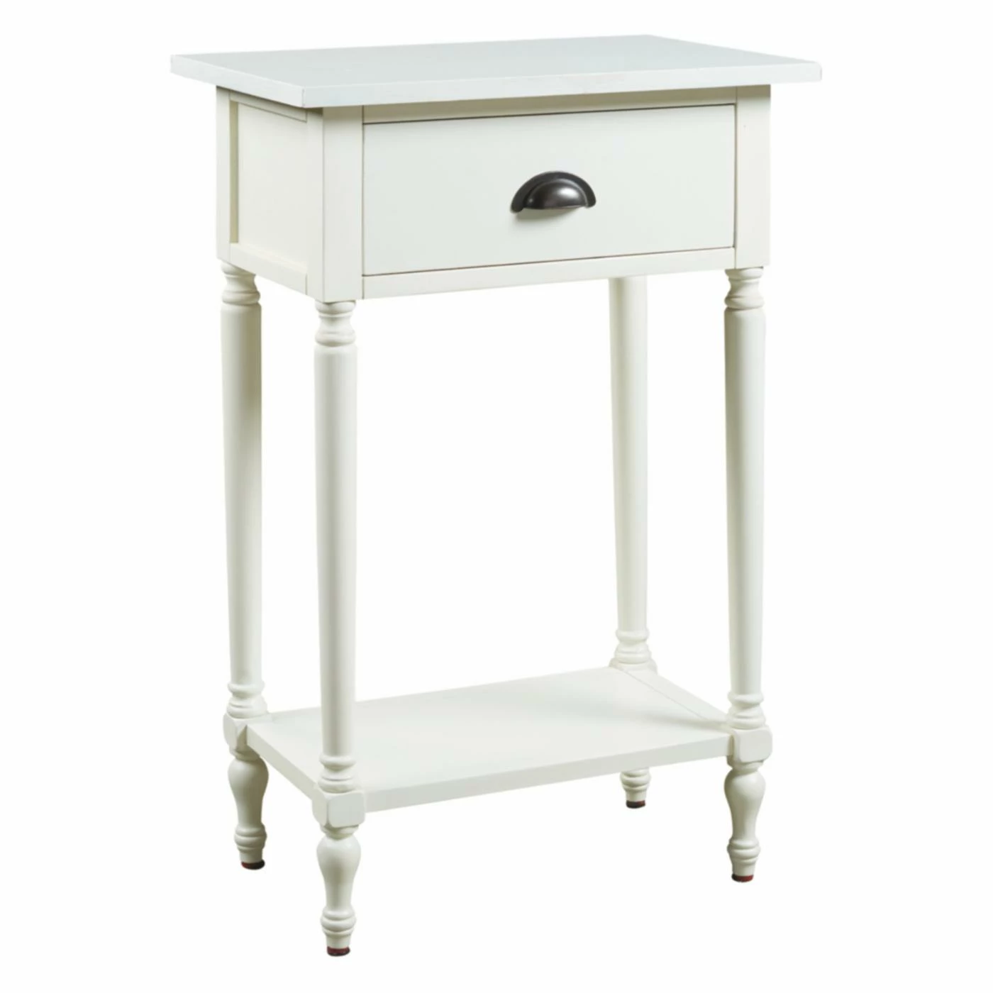 - 1 smooth-gliding drawer and 1 lower shelf offer storage