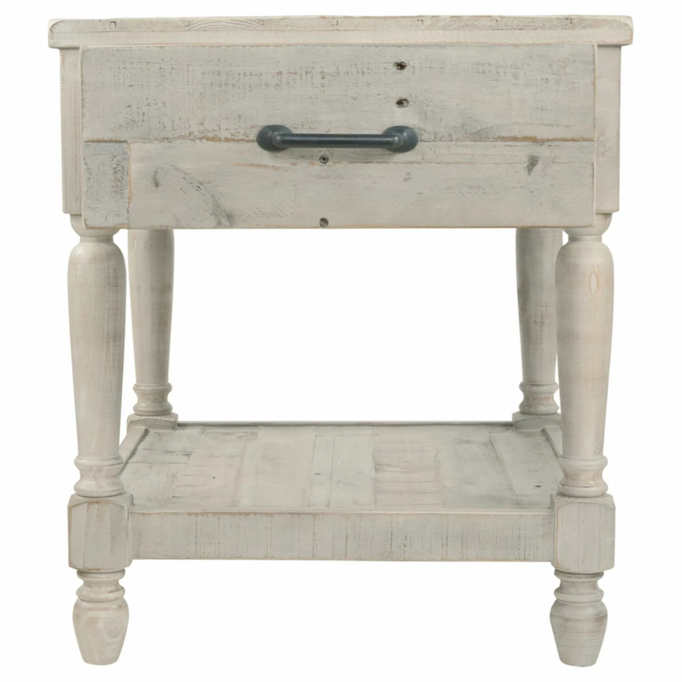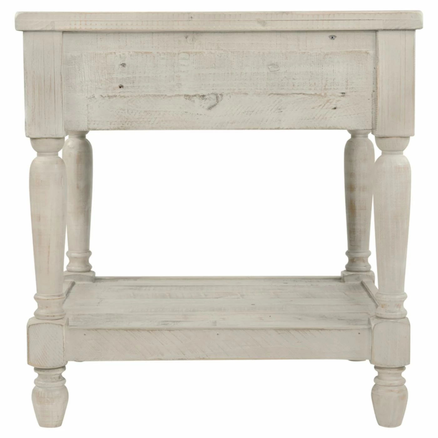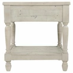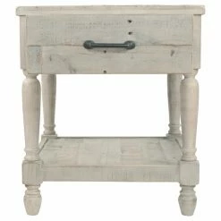 With its distressed white wash finish, the Signature Design by Ashley Shawnalore 22 in. Rectangular End Table adds fresh farmhouse charm to your living space. You’ll love this sturdy wood end table boasting carved legs for a dash of extra charm. A top storage drawer and bottom open shelf provide you with ample storage for all of your daily essentials.