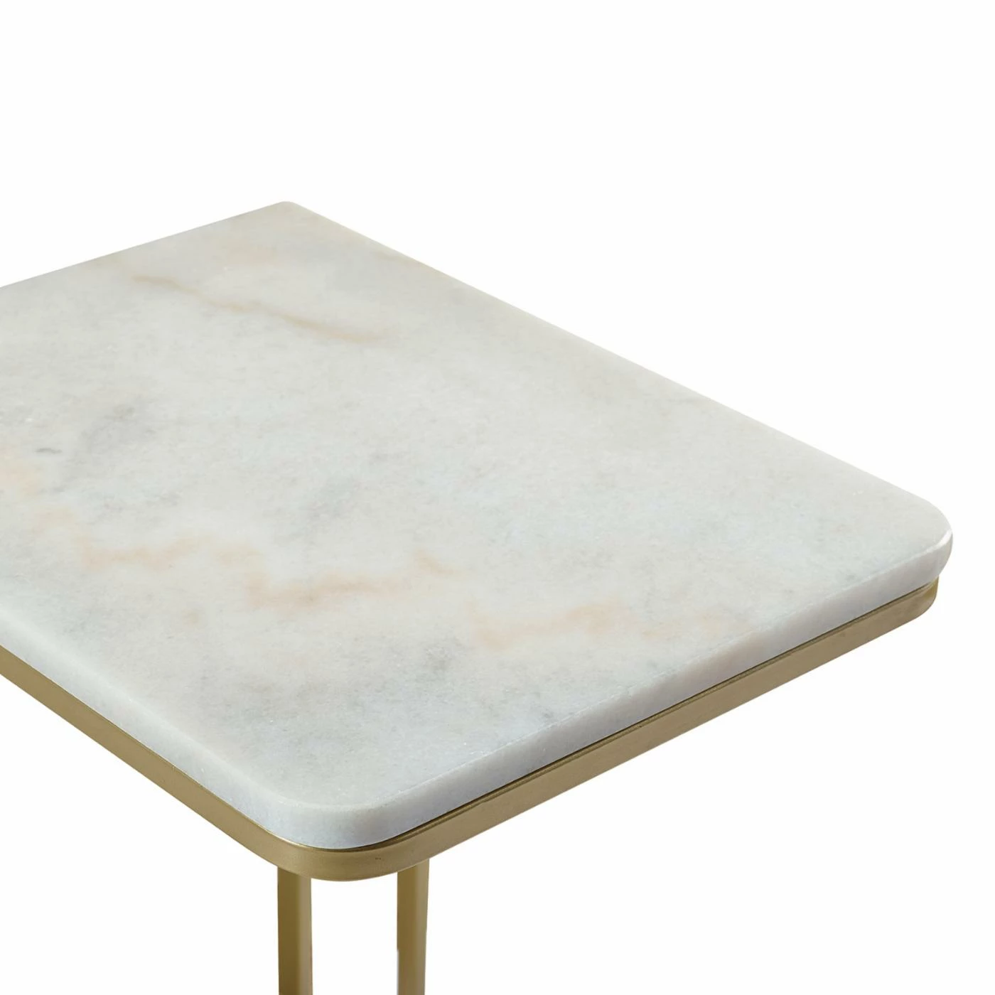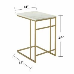 The Southern Enterprises Fallon End Table is a chic accent table, designed to pull up to your sofa for a comfortable workspace. Crafted from metal with a rectangular marble top, this end table features a gold frame to complete the transitional look. This end table is covered by a manufacturerβs limited 1-year warranty.