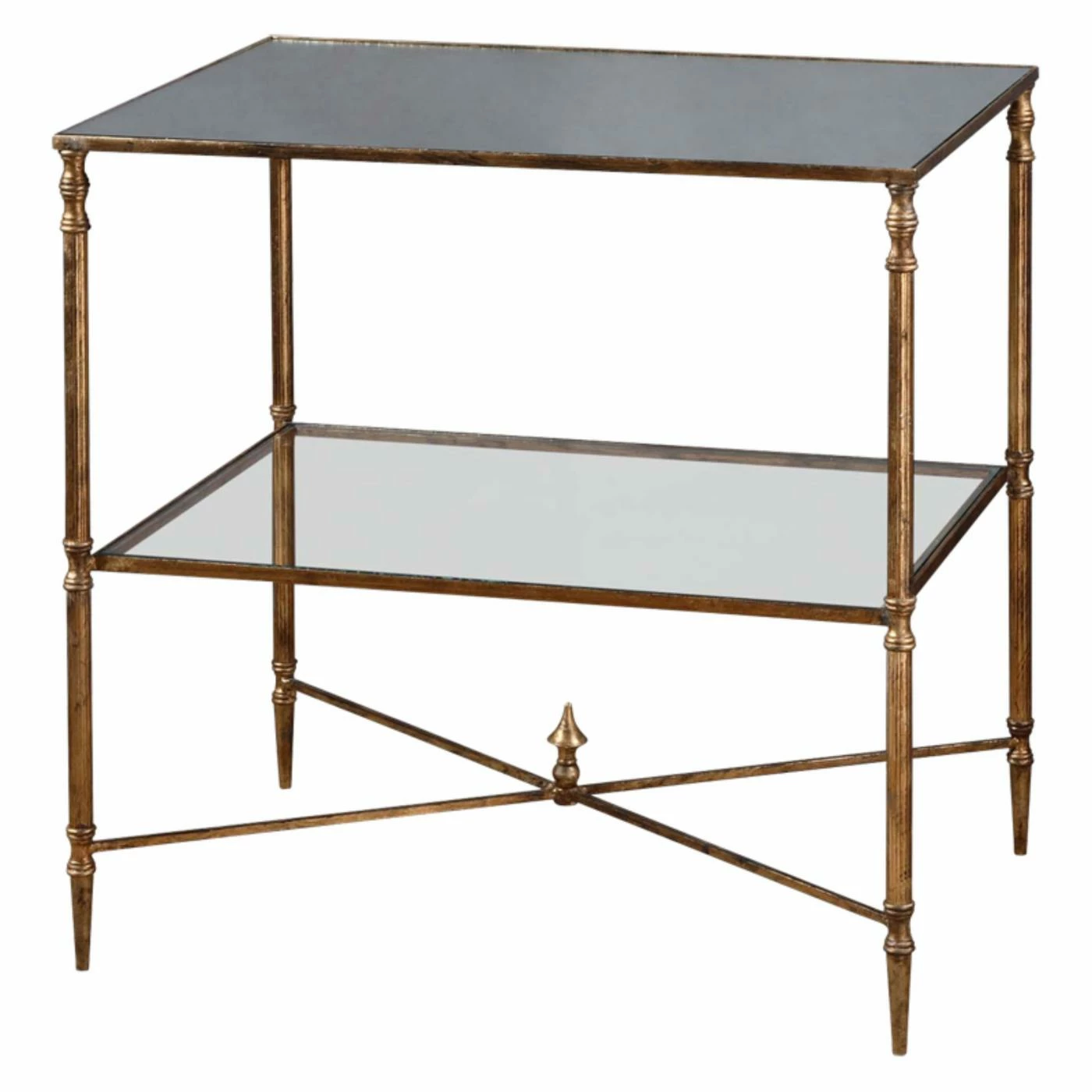 Built as an attractive and durable piece of furniture, the Uttermost Henzler Lamp Table is a useful addition to your home decor. This lamp table has a spacious reinforced mirror top and a shelf for additional storage space. The shelf is made of tempered glass that is designed to last for years to come. Apart from this, the tough iron frame of the table features a gold leaf finish with heavy antiquing that gives it a vintage appeal.