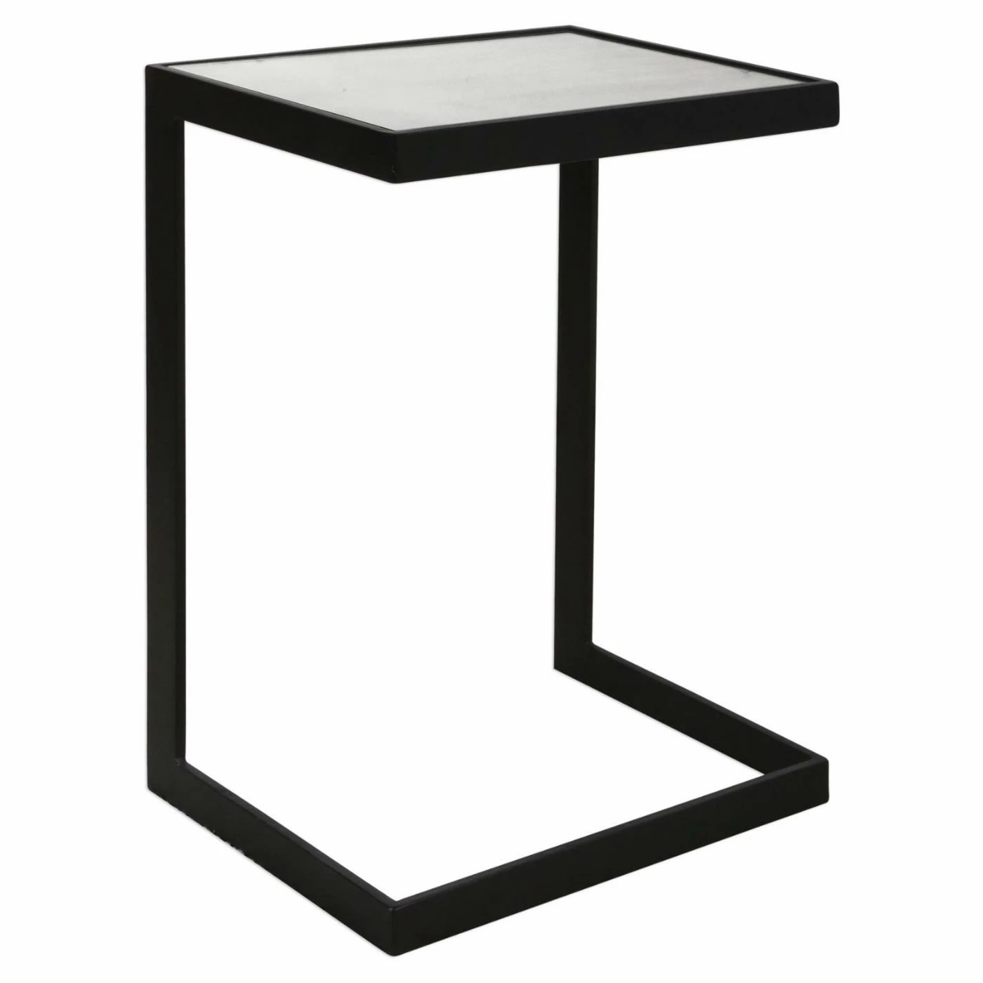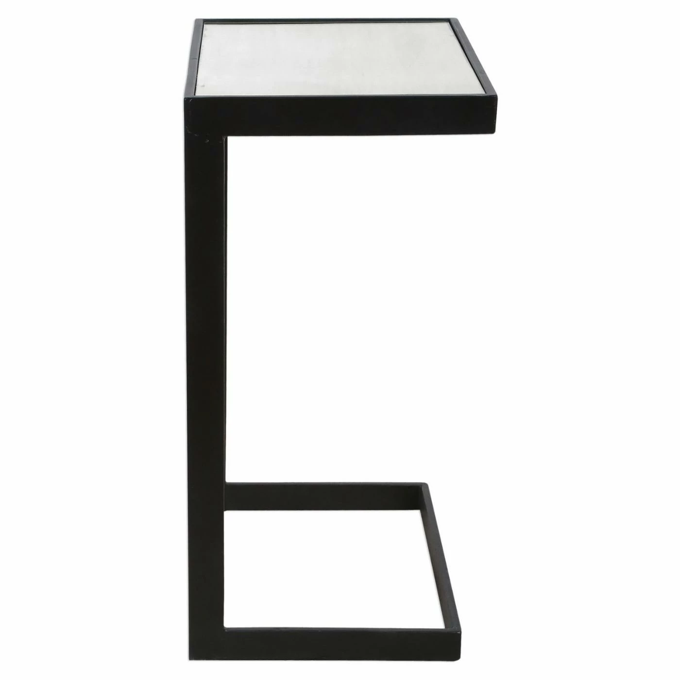 Add style and functionality to your leisure space with the Uttermost Windell Cantilever Side Table. This handy side table is made with a black iron frame and an antiqued mirror top. Its modern design hugs your couch for better positioning. Perfect as a side or middle table, this piece will be a chic staple for your lounging area.