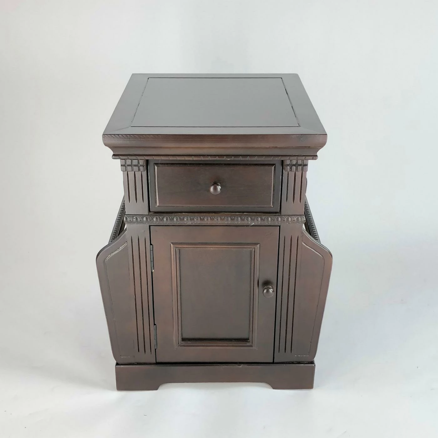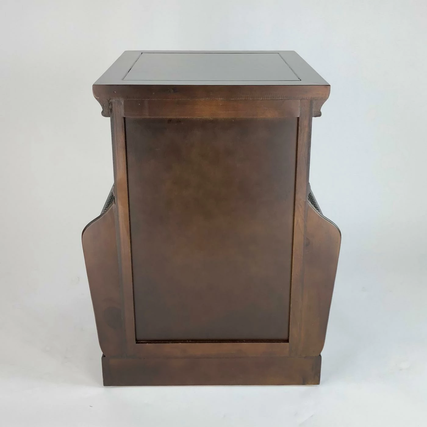 Add vintage appeal to your decor with the Wayborn 5562 Magazine Cabinet. Crafted of pinus sylvestris wood, this stunning cabinet is hand-carved and embellished with a dark brown finish and carved trim accents. This beautiful cabinet features magazine racks on either side, one pull out drawer, and one door that opens up to ample storage space for all your reading necessities.