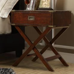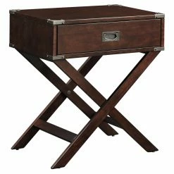 Dress up your living space with the smart style of the Weston Home 1 Drawer Accent Table with X Leg. This charming accent table offers a solid wood construction and transitional look. Its top features metal corner accents and an inset pull handle on the drawer. Use it as an end table, accent piece, or wherever you need functional style.