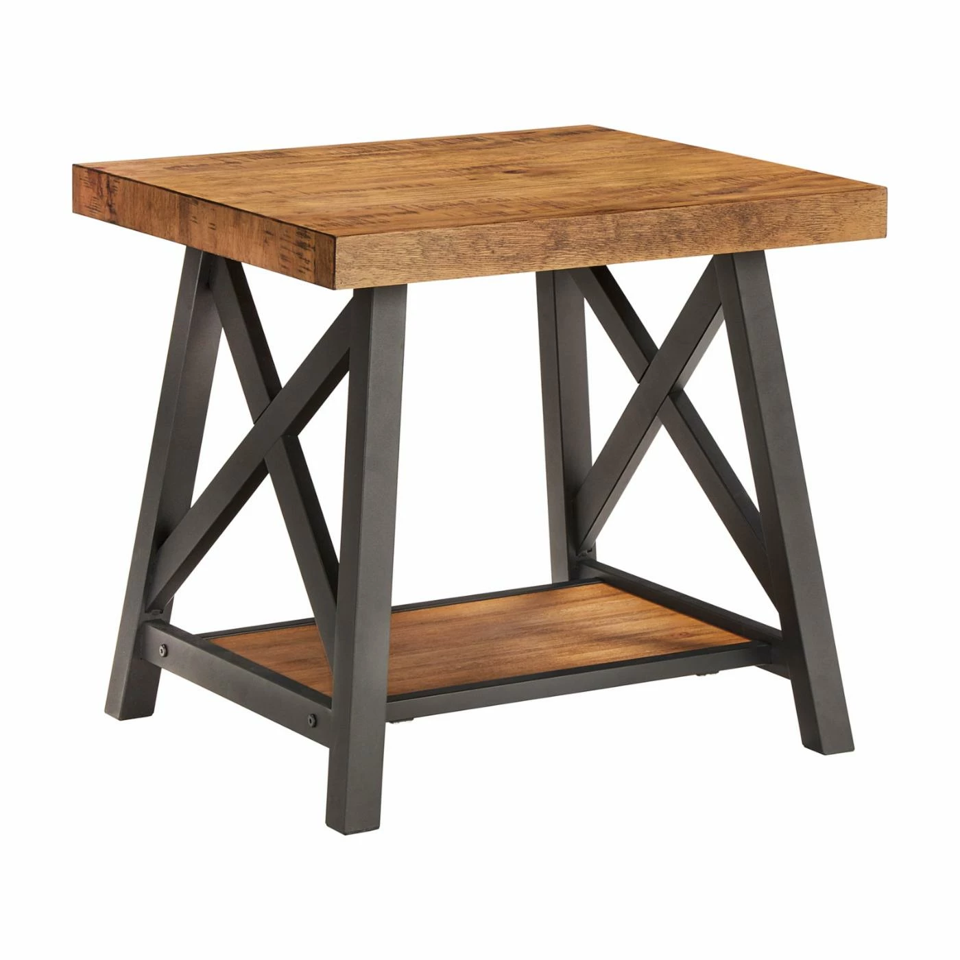 The rustic industrial design of the Weston Home Strandel End Table is sure to make it a favorite. Featuring an engineered wood and veneer top and bottom in your choice of available finishes, this end table blends seamlessly with any decor. The black powder-coated frame with an X-design completes the look.