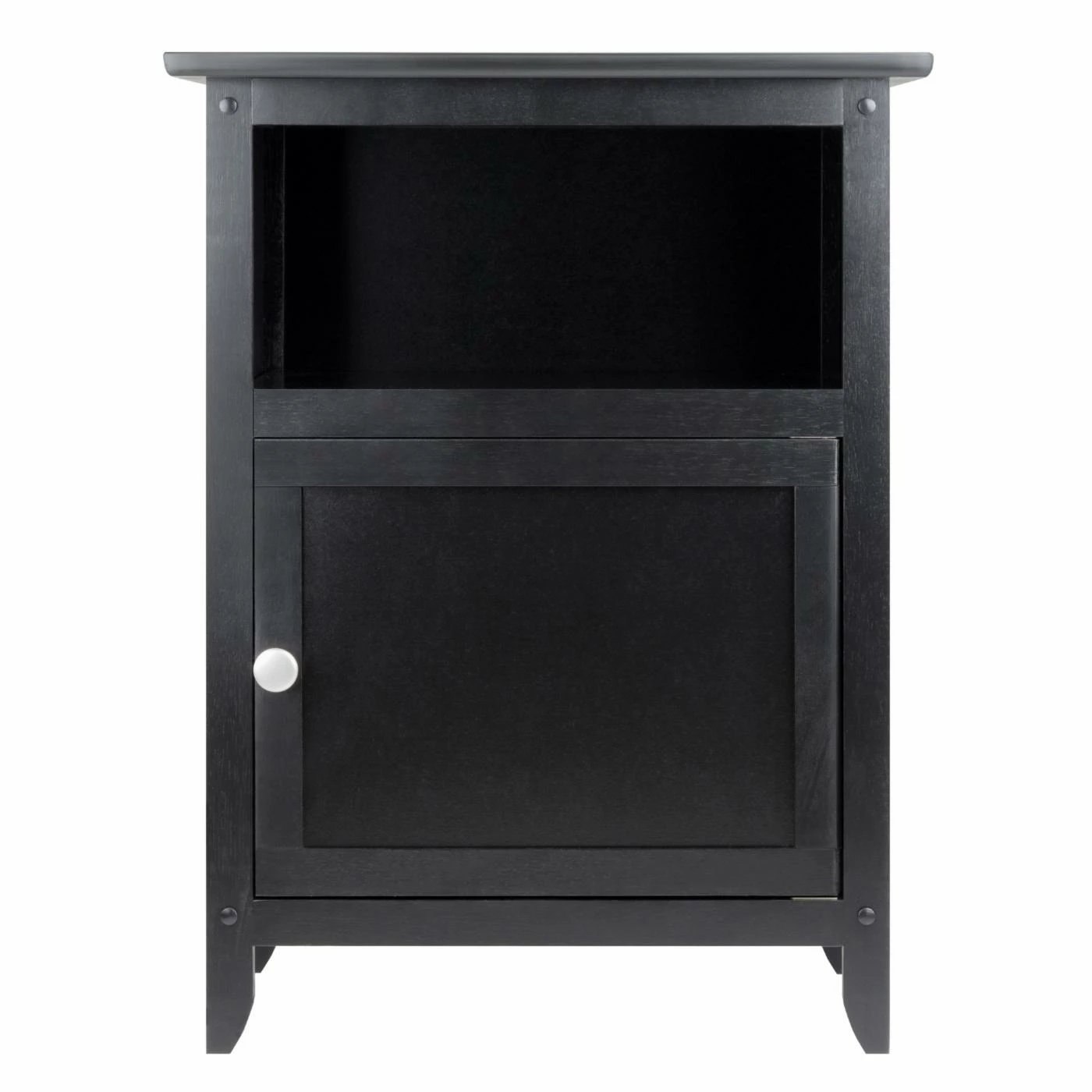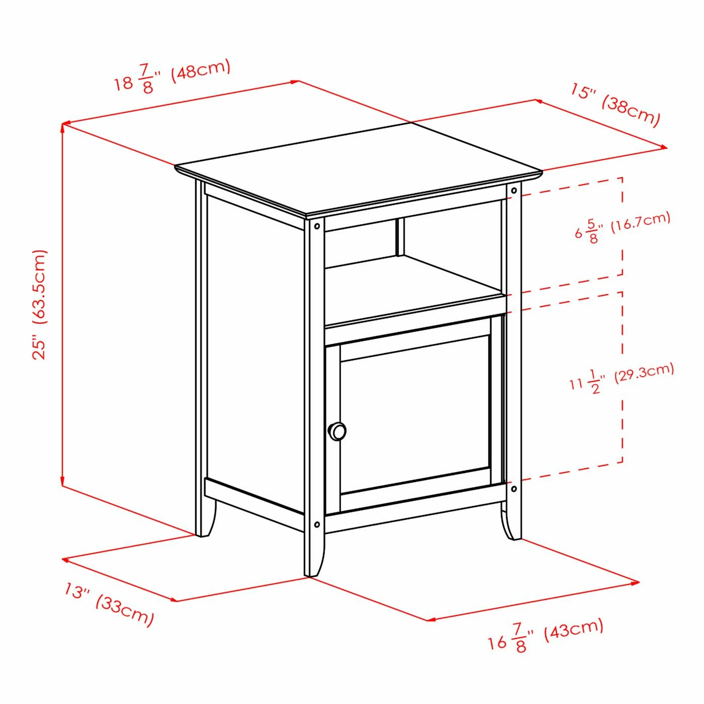 Add lovely Shaker style and storage to your home with this solid wood Black End Table With Storage Cube. Constructed of solid hardwoods, this table has a top cubby and a lower cabinet for storage. It is sure to add a great touch to any room, and the black finish goes with any decor. Easy assembly. Dimensions: 19L x 15W x 25H inches.