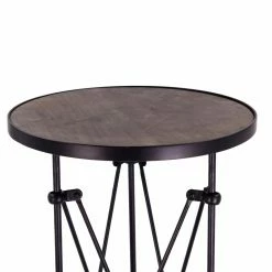 Blending rustic and industrial designs together, the 3R Studios Pine Wood Top Metal End Table showcases a slim and compact silhouette ideal for small spaces. Position this sturdy end table next to a sofa or chair with its back metal legs and round pine wood top featured in a rich brown finish.
