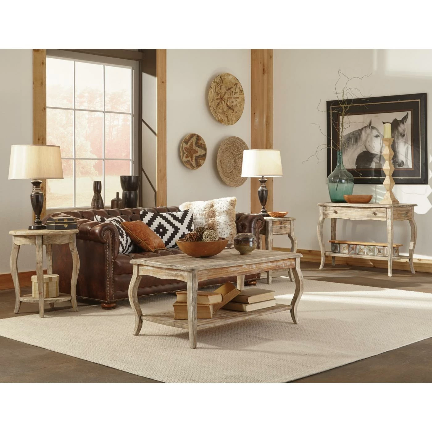 Rustic Collection of reclaimed wood furniture features handcrafted design and the light, driftwood finish allows for the natural wood grain to stand out. Queen Anne legs bring a sense of traditional style to this rustic, reclaimed wood collection.
