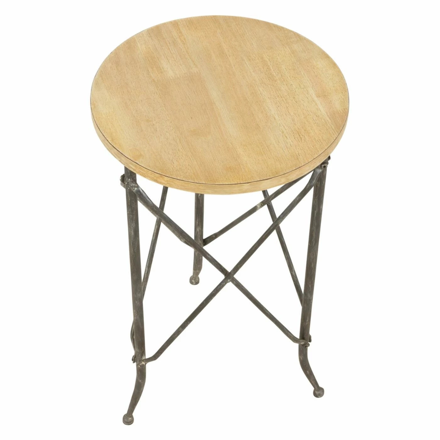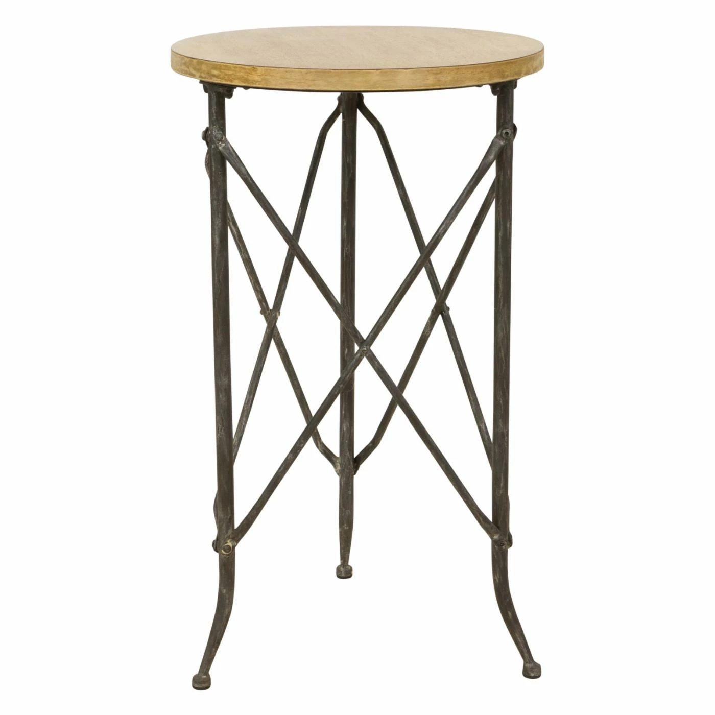 - Round accent table with crisscross detailing