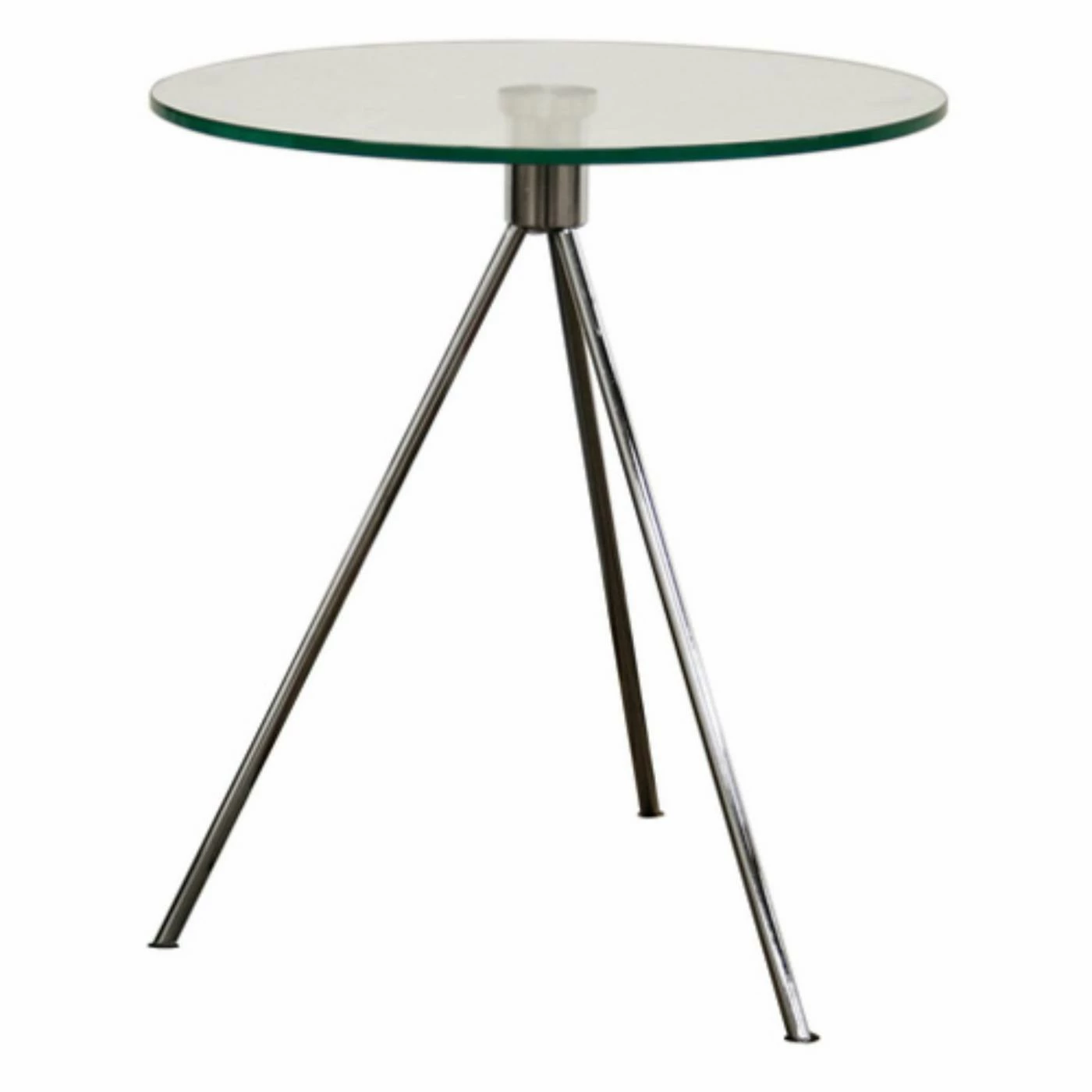 The Baxton Studio Triplet Round Glass Top End Table with Tripod Base makes a great addition to any living space. Use this contemporary end table to hold your books, beverages, plants, and decor items. Or place it by your bed as an elegant nightstand for your lamp and alarm clock. The round tabletop is made of clear tempered glass, and it sits on a sturdy tripod base made of steel with a brushed nickel finish.