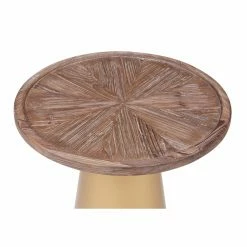 An eye-catching addition to your living room, the mid-century inspired Burnham Home Designs Patrick Corner End Table beckons guests to take a second look. A gold conical metal base supports a reclaimed pine wood surface with a radial design. Choose the best height option to suit your space. Pair with the Patrick Round Coffee Table to complete the look.