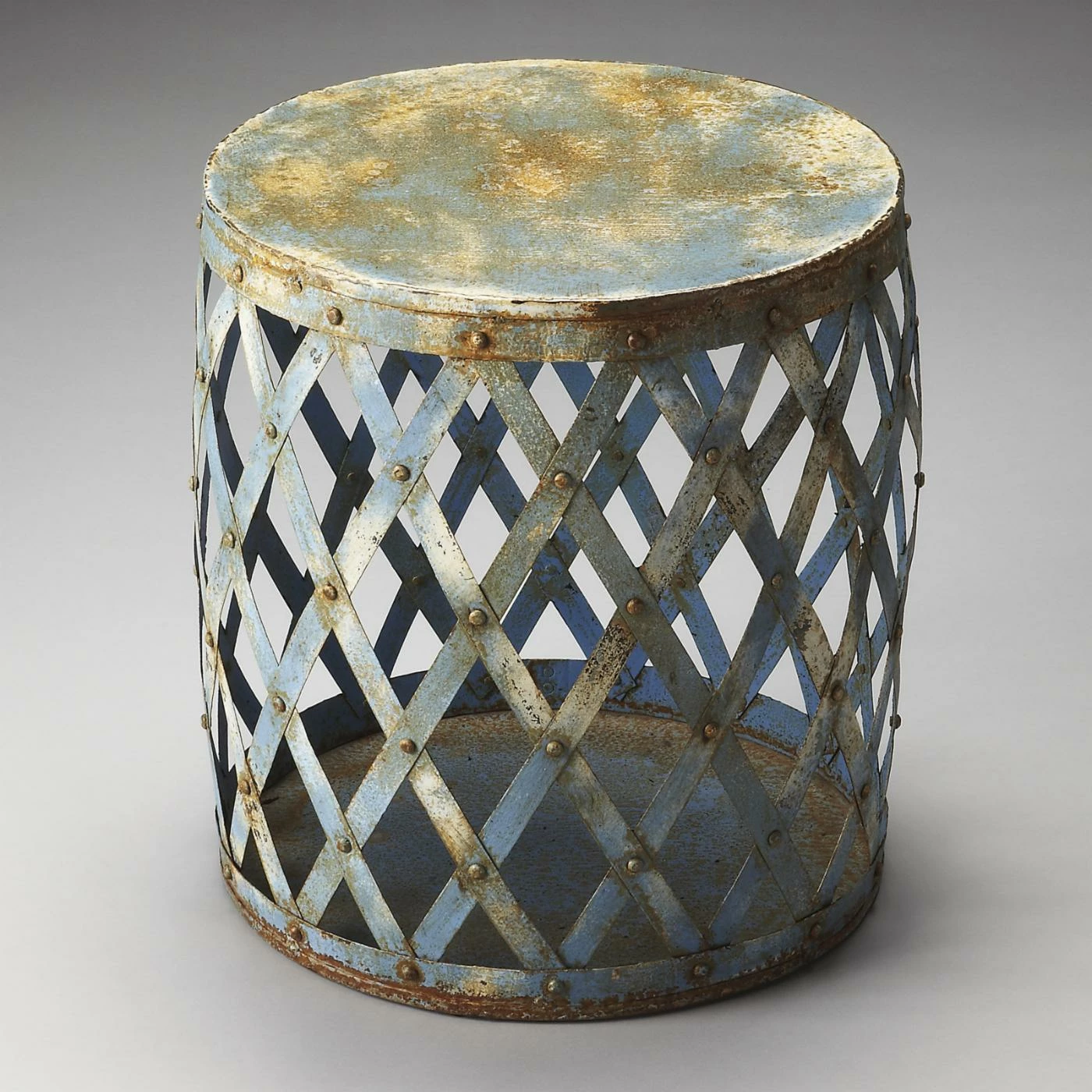 Primitive inspired, this Butler Specialty Artifacts Bunching Table is fitting for those who love furniture pieces with a raw edge. Constructed of strong iron, this industrial piece boasts riveted lattice sides for alluring detail and support. Ideal for holding a lamp, glass of water, or decorative items, it works well in bedrooms and living spaces.