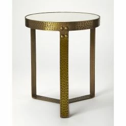 Build the boho, globally inspired room you deserve, starting with the Butler Specialty Elton Marble and Metal End Table. This table is made from iron finished in an aged gold color that’s been hammered with distressed dots. The matching round hardware creates a cohesive look to this metallic piece. The white tabletop is marble for a more luxe detail. No assembly is required before putting this table in your space.