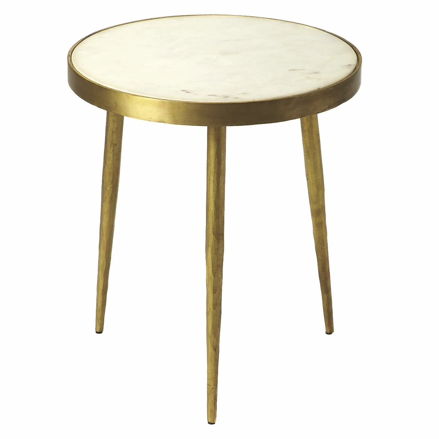 Bring casual elegance to your living space with the Butler Specialty Triton Bunching Table. The chic white marble top sits atop three classic tapered legs. The sturdy frame is forged from and finished in antique gold for a touch of glam.
