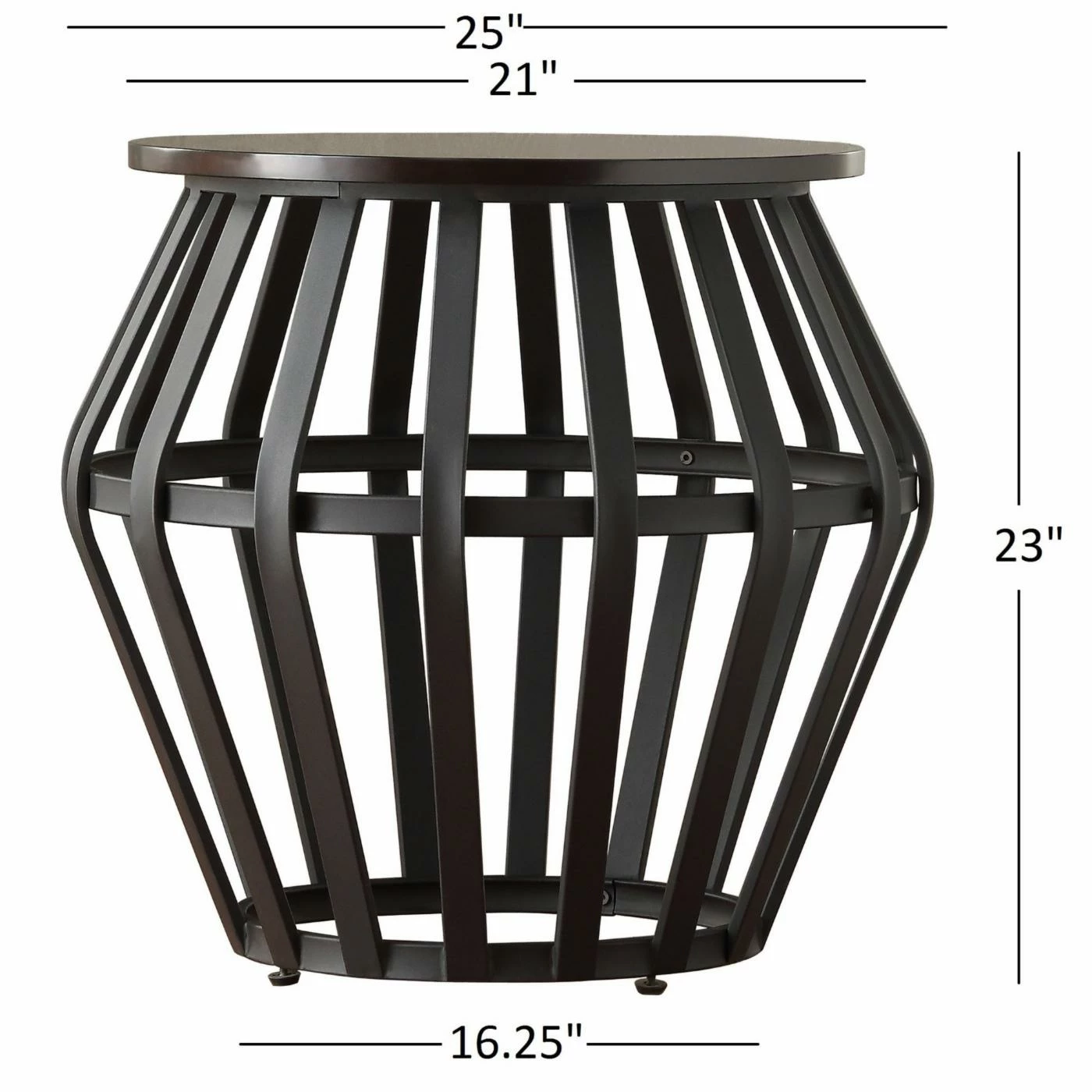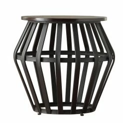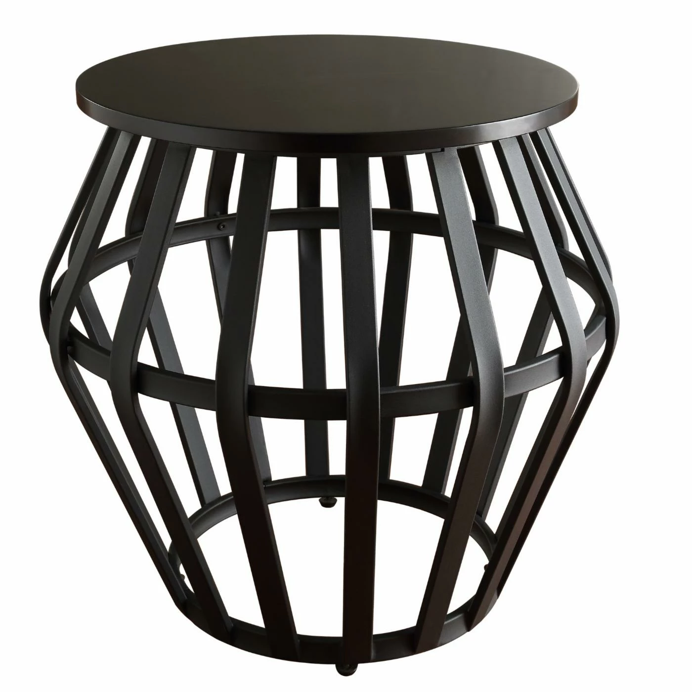 Pub styling comes home to roost with the Chelsea Lane Round End Table. This visually interesting end table features a metal barrel-cage base with a round wooden top in a rich espresso brown finish. Most transitional settings will benefit from the association.
