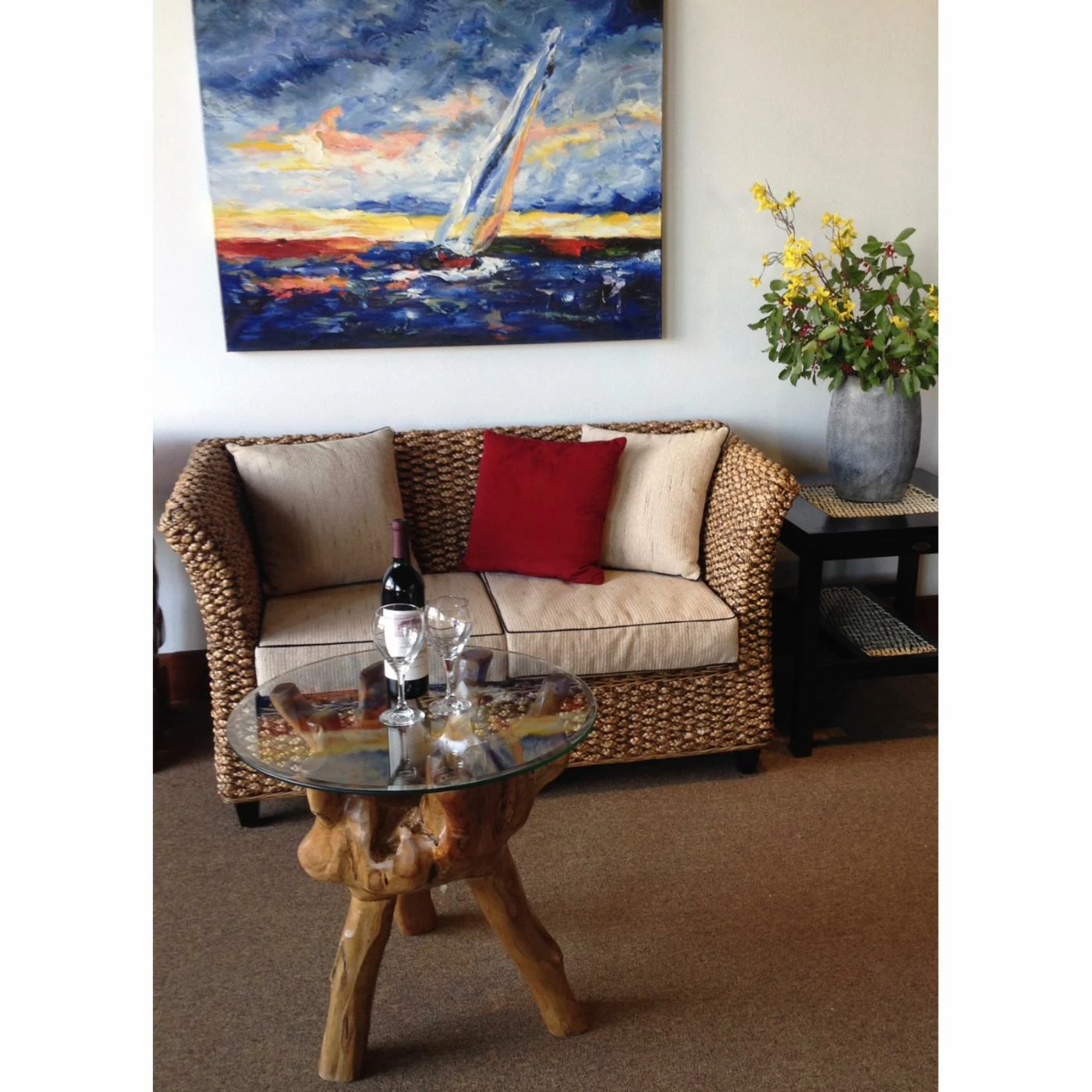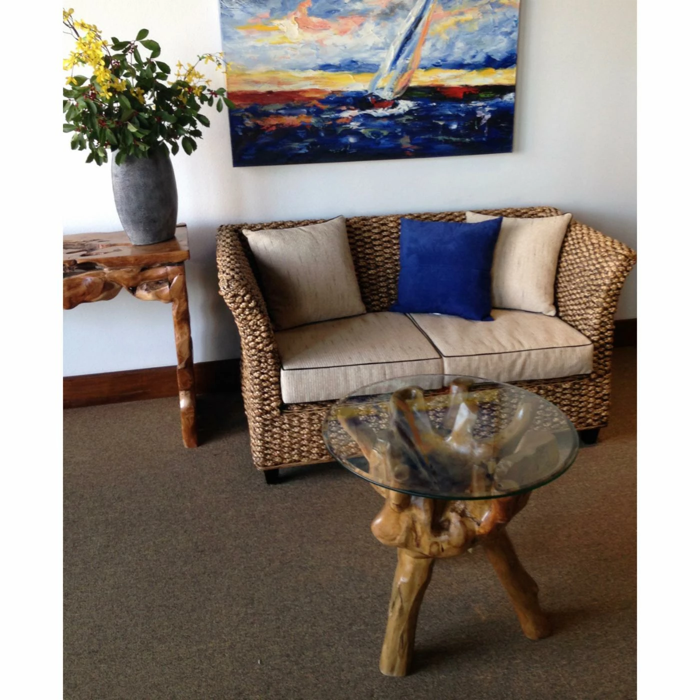 We can guarantee you that nobody on your block, or even in your town, will have a table like the Chic Teak Teak Root Side Table. This unique piece is handmade from a section of a real teak tree, and you get to enjoy that organic shape and all the shifting tones and subtle imperfections that are part of the honest shape. A simple finish protects and preserves the original colors and textures while adding to the life of the piece. Across the top you have a single sheet of smooth-edged, shatter-resistant glass. This low-maintenance surface makes this table easy to use each and every day.