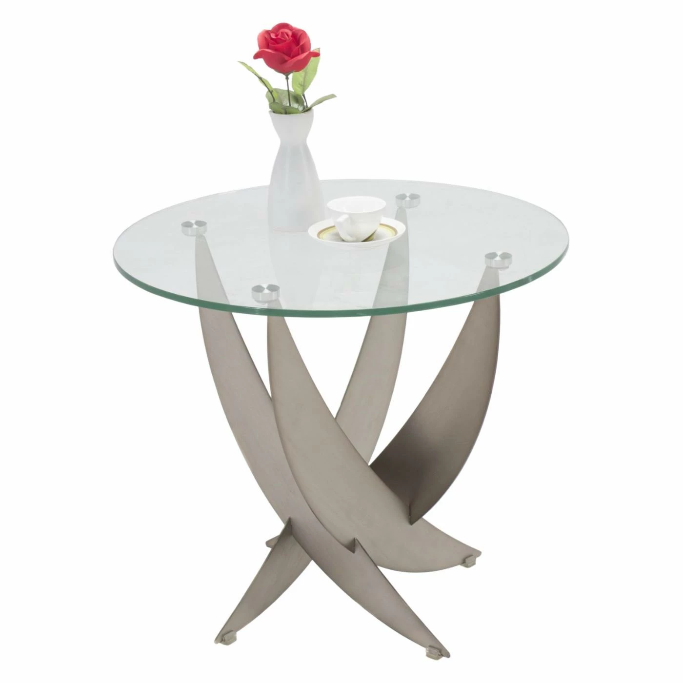 - Clear, round tempered glass top