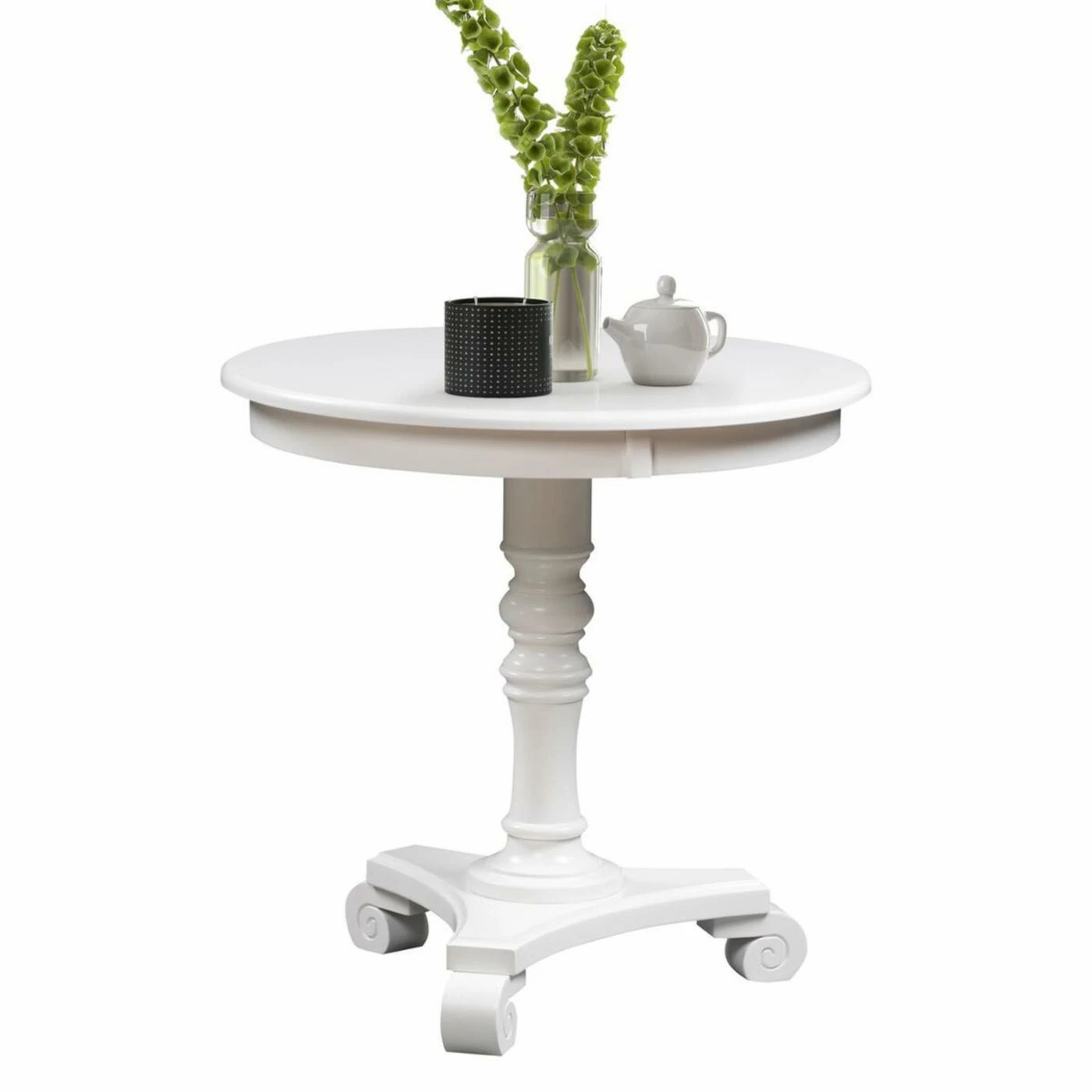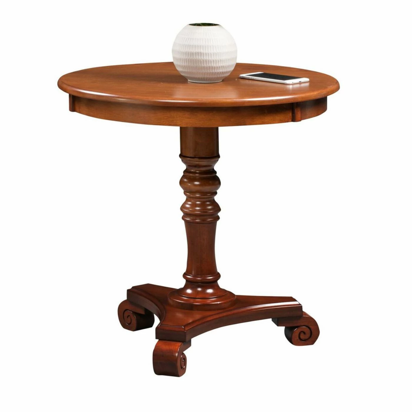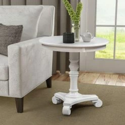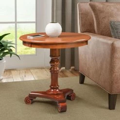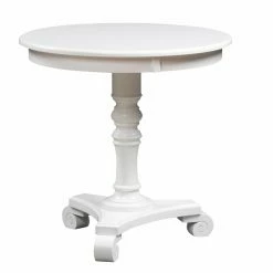 Timeless style and stunning detail make the Convenience Concepts Classic Accents Talbot End Table an effortlessly elegant addition to any room in your home. The end table is constructed from durable engineered wood and solid rubberwood, with a large circular tabletop with plenty of space for holding lamps, reading material, coasters, and decorative items. A central spindle-style pedestal leg is accented with scrolled feet for a traditional look that never goes out of style.