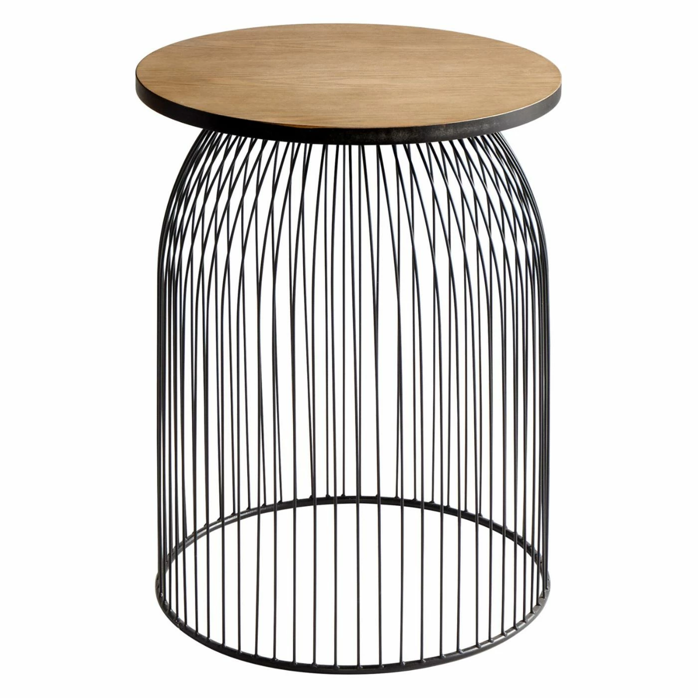 Get caught up in the industrial style of the Cyan Design Bird Cage Table. The black iron base resembles a bird cage with its round, domed shape and slender bars. Natural wood brings an organic look to the design.