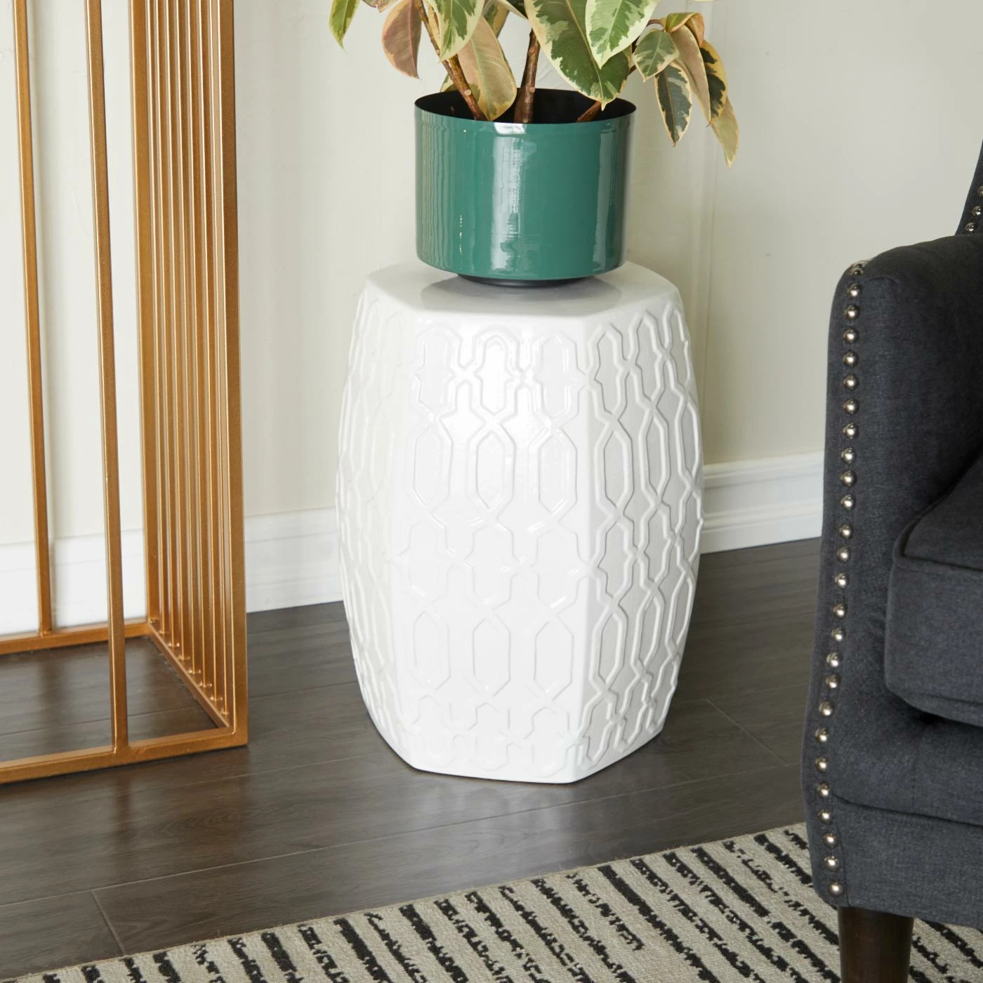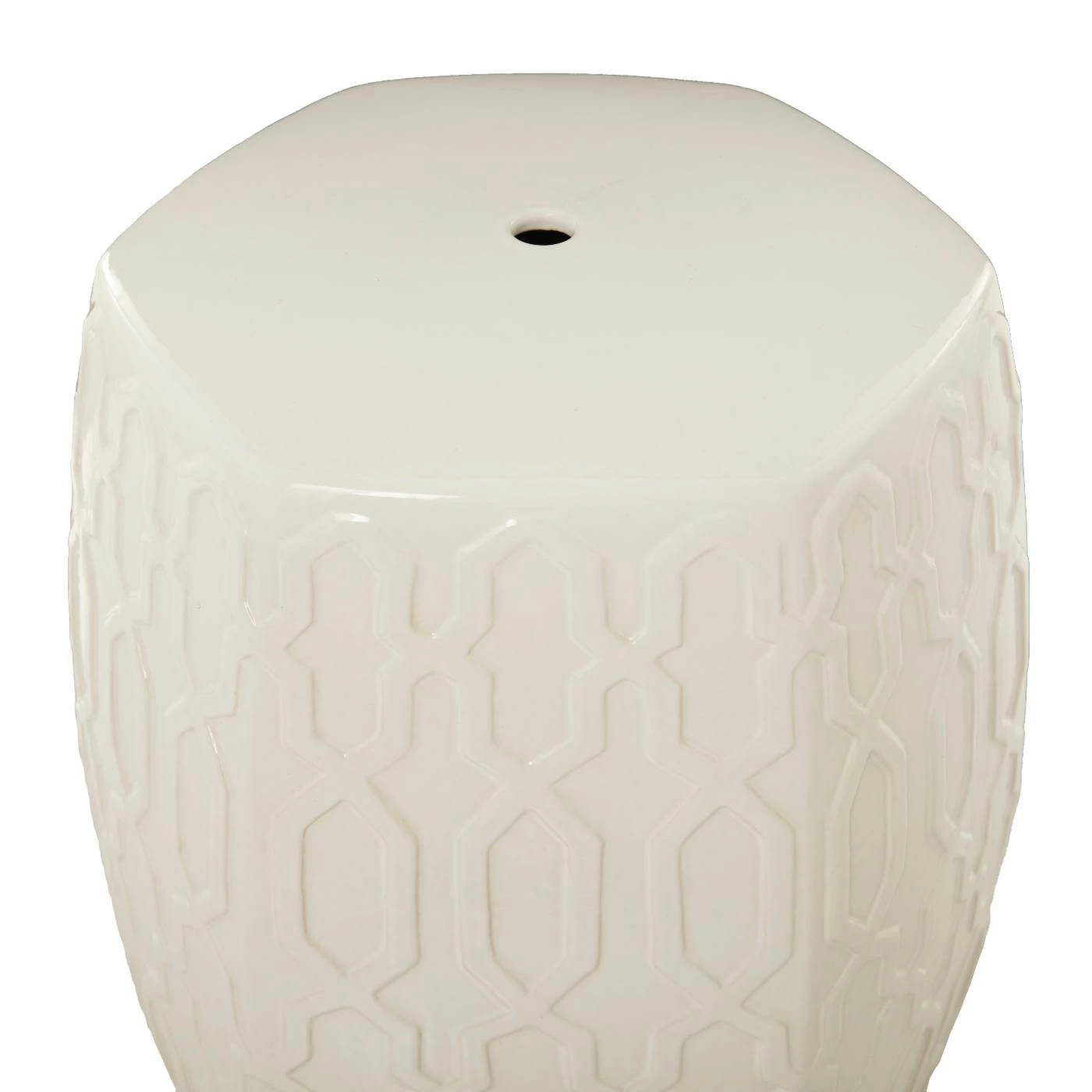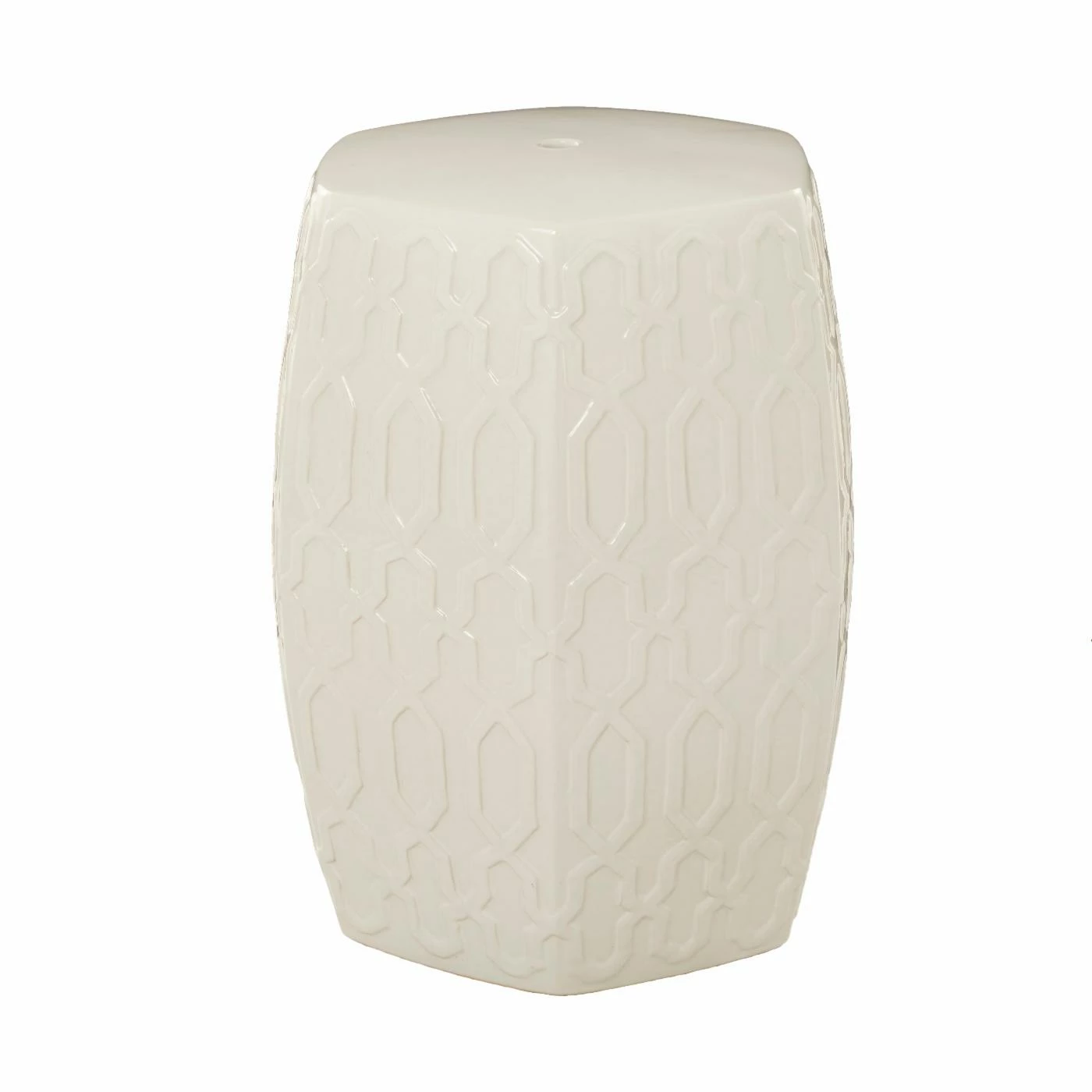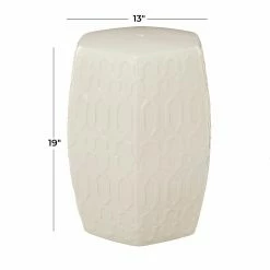 - This decorative side table features a hexagonal body designed with textured hexagonal cut diamond pattern