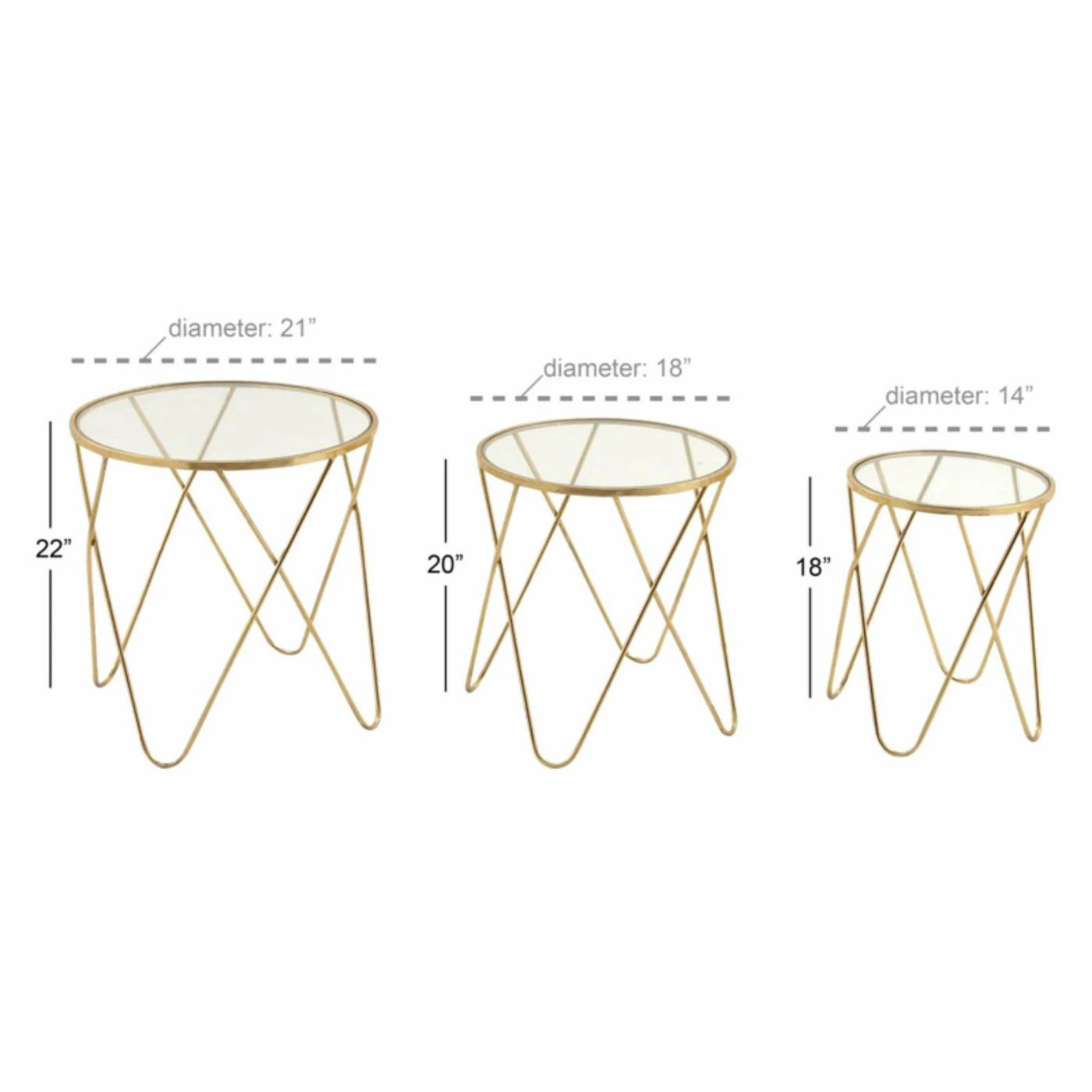 Simple yet incredibly elegant, the DecMode Glass Top End Table – Set of 3 make a beautiful addition to your contemporary decor. Inspired by retro style, this trio features hairpin legs and simple glass table tops.
