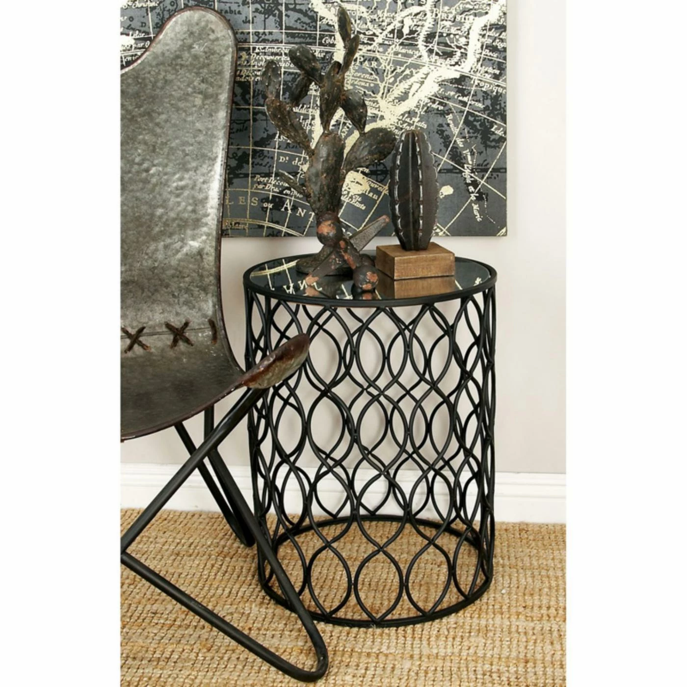 Make your living space feel more expansive with the DecMode Mirrored Top Accent Table. A gleaming mirror rests on the top of this cylindrical table and reflects the light to make living spaces feel bigger. The black-finished iron geometric cage base adds to the effect by allowing you to see through to the other side of the room.