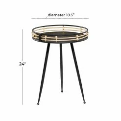 - Round end tables feature a tripod design legs with tray-inspired table top that provides a secure and sturdy display of any decor