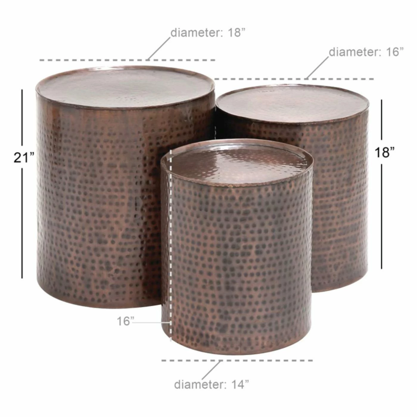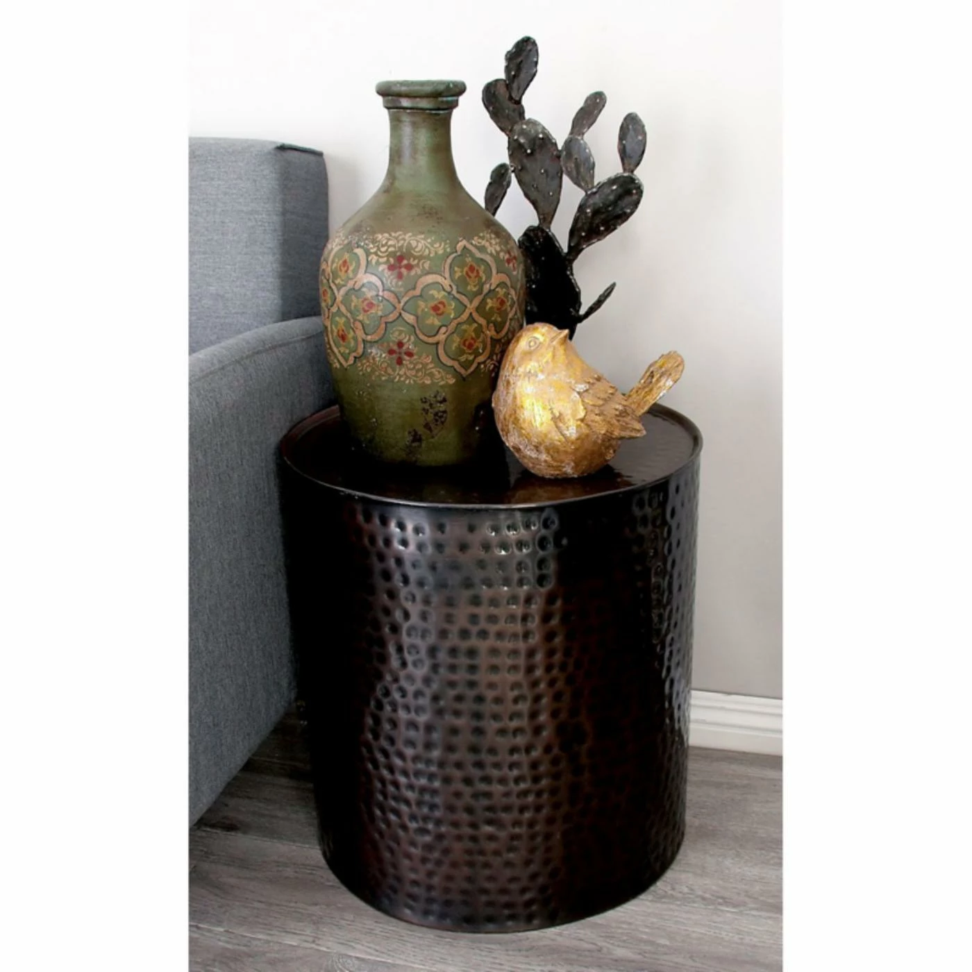 Whether you display them side by side or spread them throughout your living space, the furnishings in the DecMode Round Accent Table – Set of 3 will add an elegant touch to your dΓ©cor. The transitional-style tables have a simple cylindrical shape that keeps the emphasis on their dimpled textures and sleek bronze metallic finish. Each table is crafted out of durable iron.