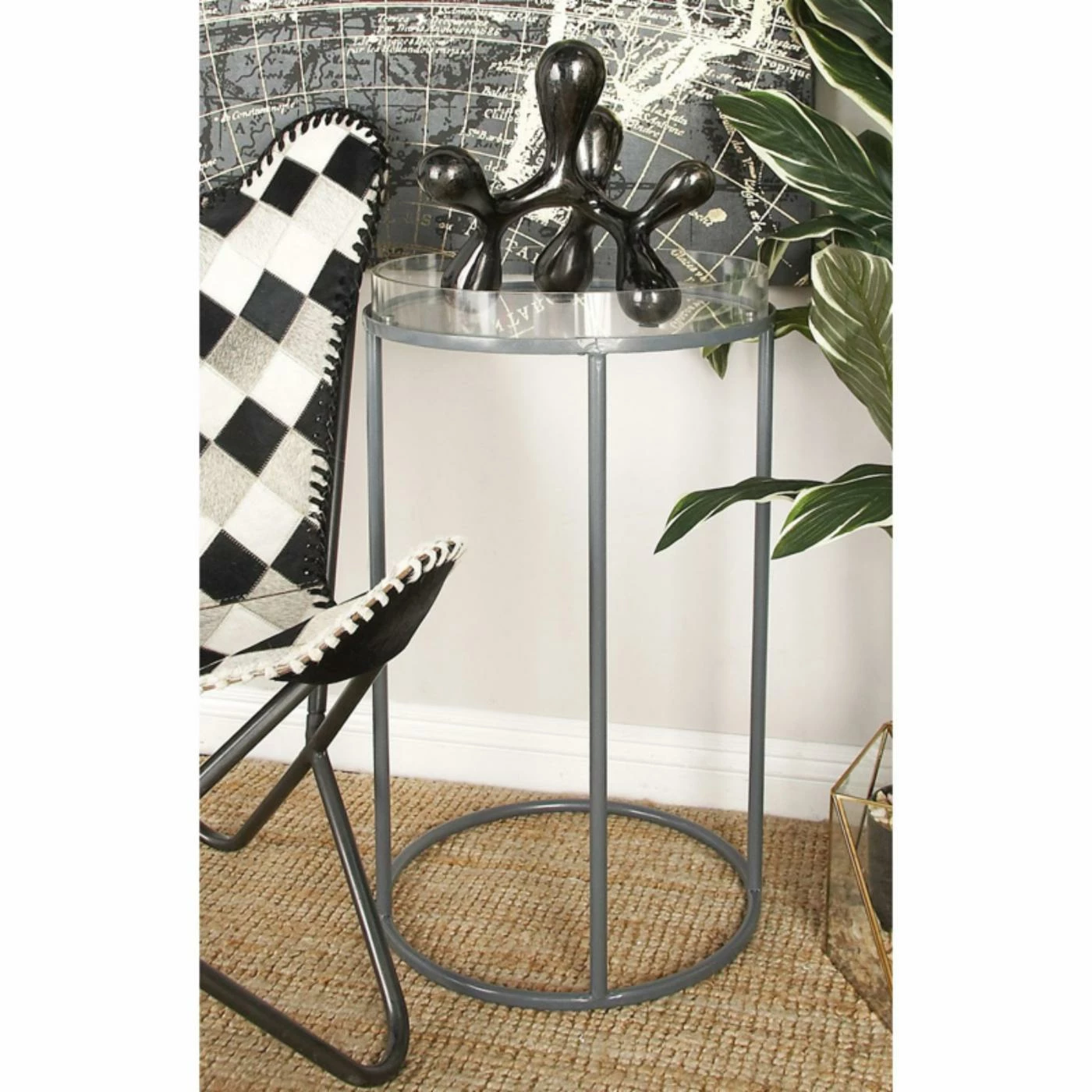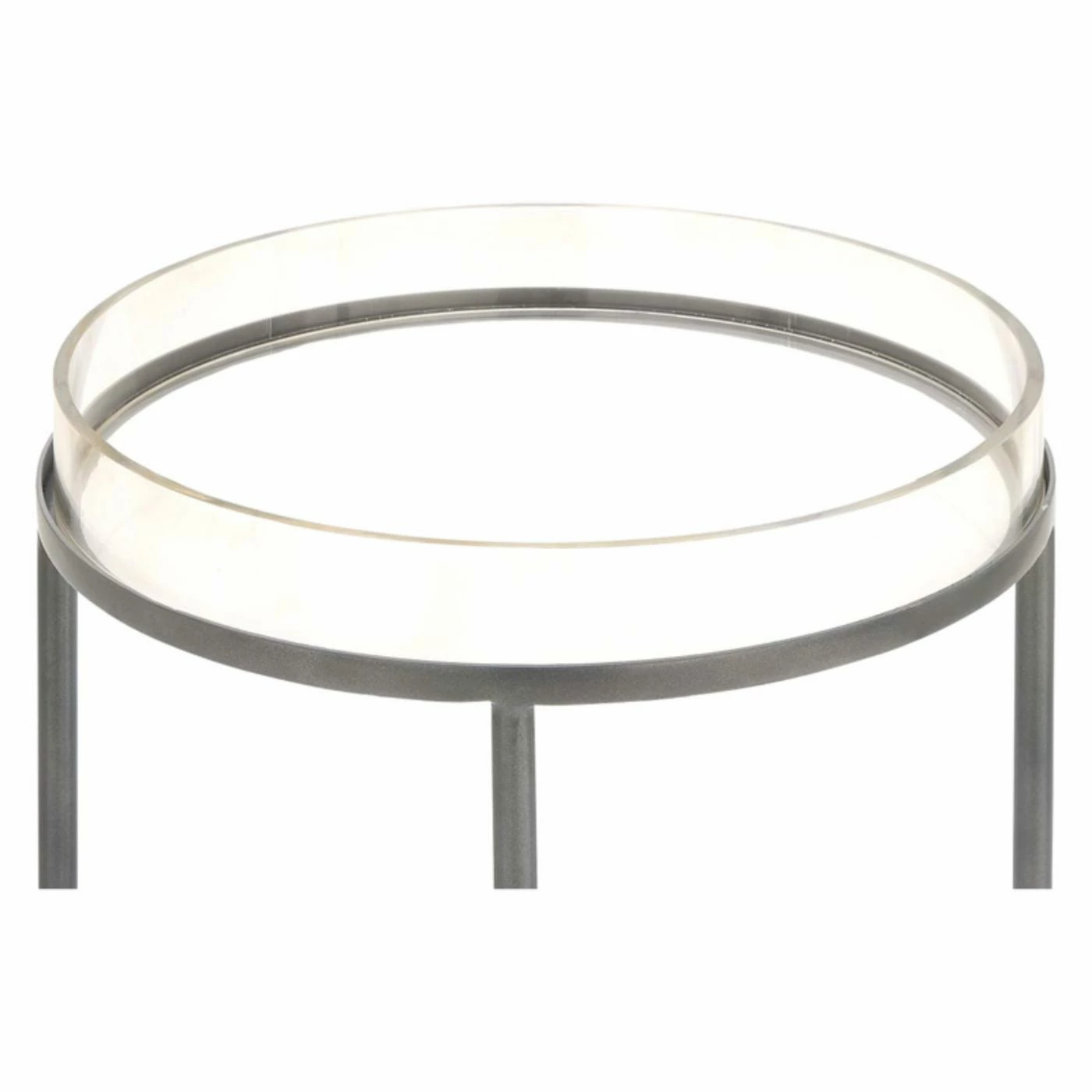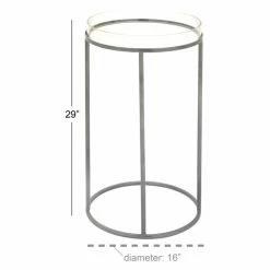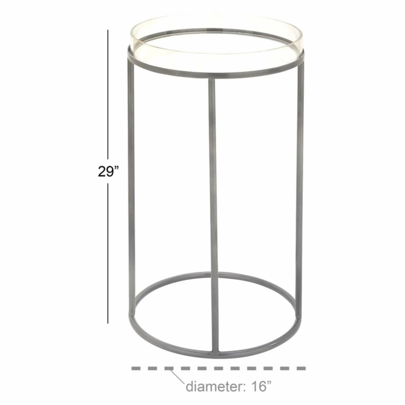 A modern design staple, the DecMode Round Acrylic Top End Table features an open circular framework and clear acrylic tray style top. This circular end table features a silvery gray finish that works with any dΓ©cor.