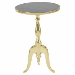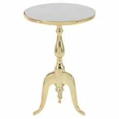 Marble construction lends a natural touch to the DecMode Traditional Marble Round Accent Table with Gold Stand, giving it a versatile look that’s easy to coordinate with your dΓ©cor and home colors. The base of this accent table is crafted from aluminum and coated with a shimmering gold finish.