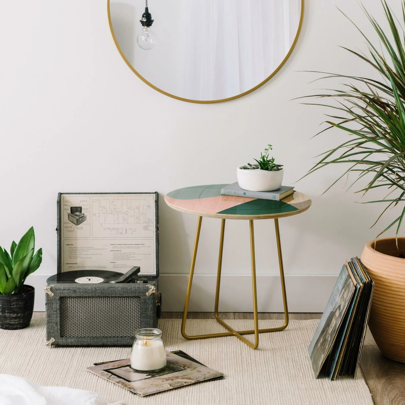With its simple design and art-print top, the Deny Designs Mareike Boehmer Graphic Round Side Table is perfect chairside or bedside. This side table is crafted from scratch in Colorado with a printed Baltic birch top protected by a smooth gloss coating. Sleek metal legs in a gold tone give this side table its glamour.