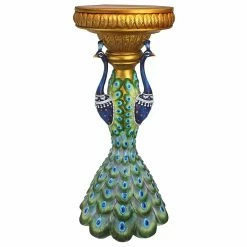 A pack of peacocks gather and display their fine plumage in the global-inspired design of the Design Toscano Great Ruler Peacock Sculptural Pedestal. The sculptural table is cast out of resin, making it resistant to wear but lightweight. Skilled artisans paint the entire piece for a vibrant, highly detailed finish. You can display a sculpture, vase, or potted plant atop the pedestal or use it to hold your drink beside your favorite chair.