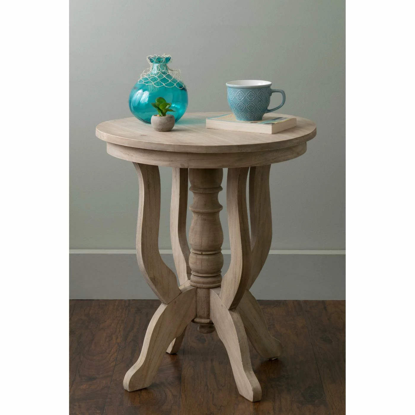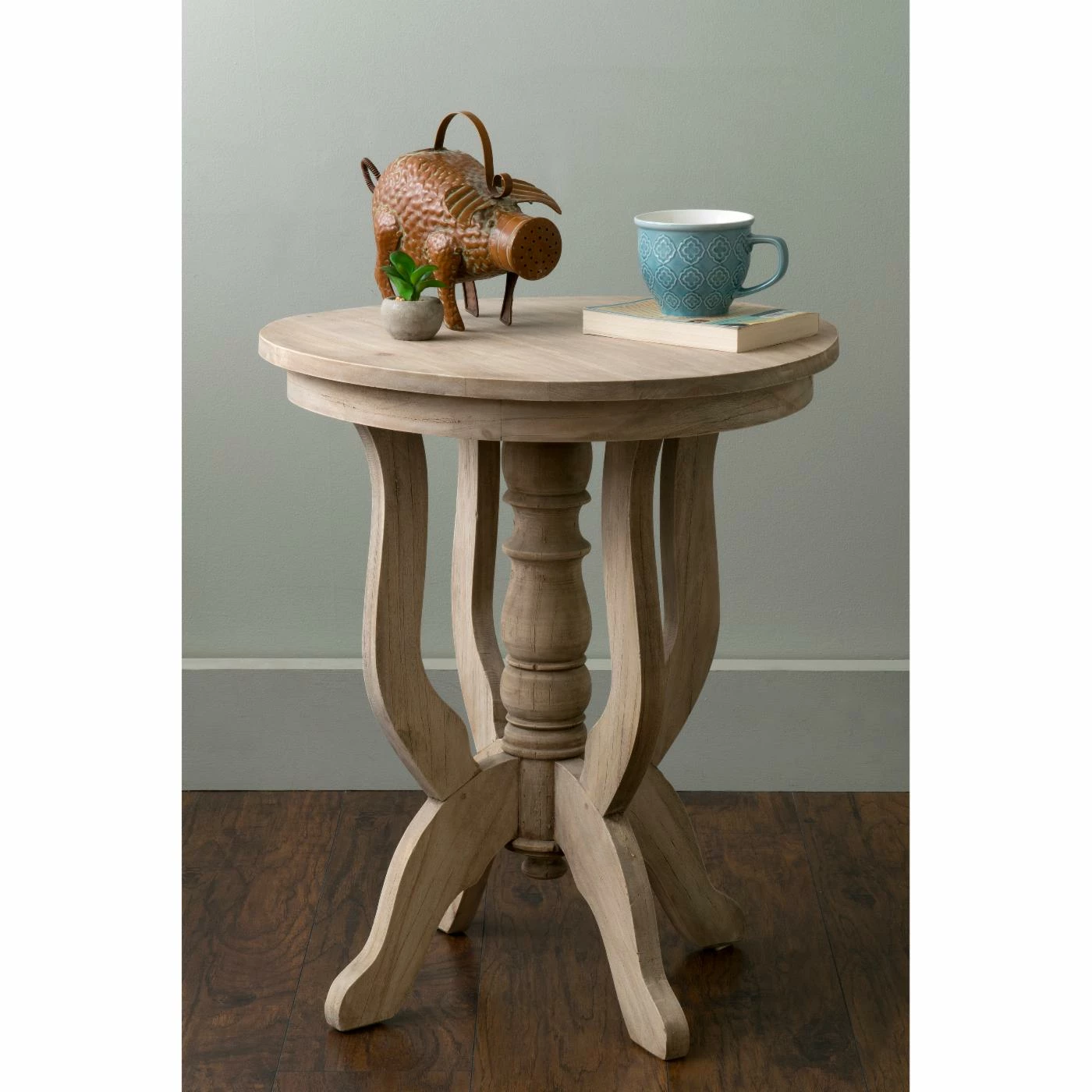 The Boyd Rubberwood Round Accent Table is off-the-charts charming with its intricate base and carved detail. The Indonesian rubberwood craftsmanship ensures lasting use. The smooth tabletop is perfect for displaying vases, lamps, and other decorative items. This accent table features a natural finish that drives home its rustic appeal.