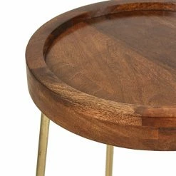 With a mix of modern design and artisan quality, this handmade accent table is just right for any room. The natural beauty of mango wood stands out in a dark brown finish, with elegant gold legs that fold for easy storage and increased versatility. The classic curve of the table breaks up tired spaces, and the higher edges of the tray top keep your drinks, snacks, and treasured trinkets safe from sliding off. Variations from natural materials and processes mean each piece is as unique as your style.