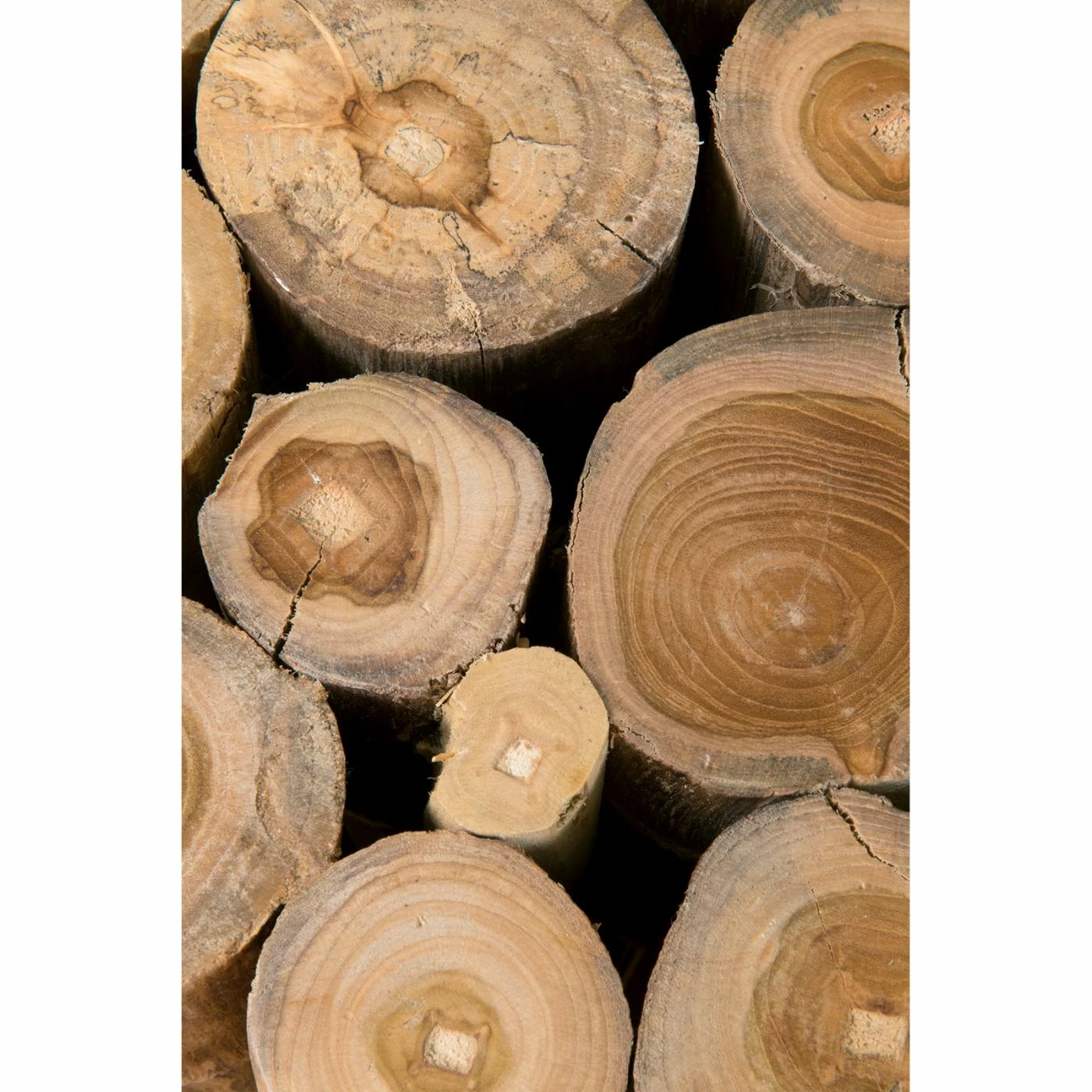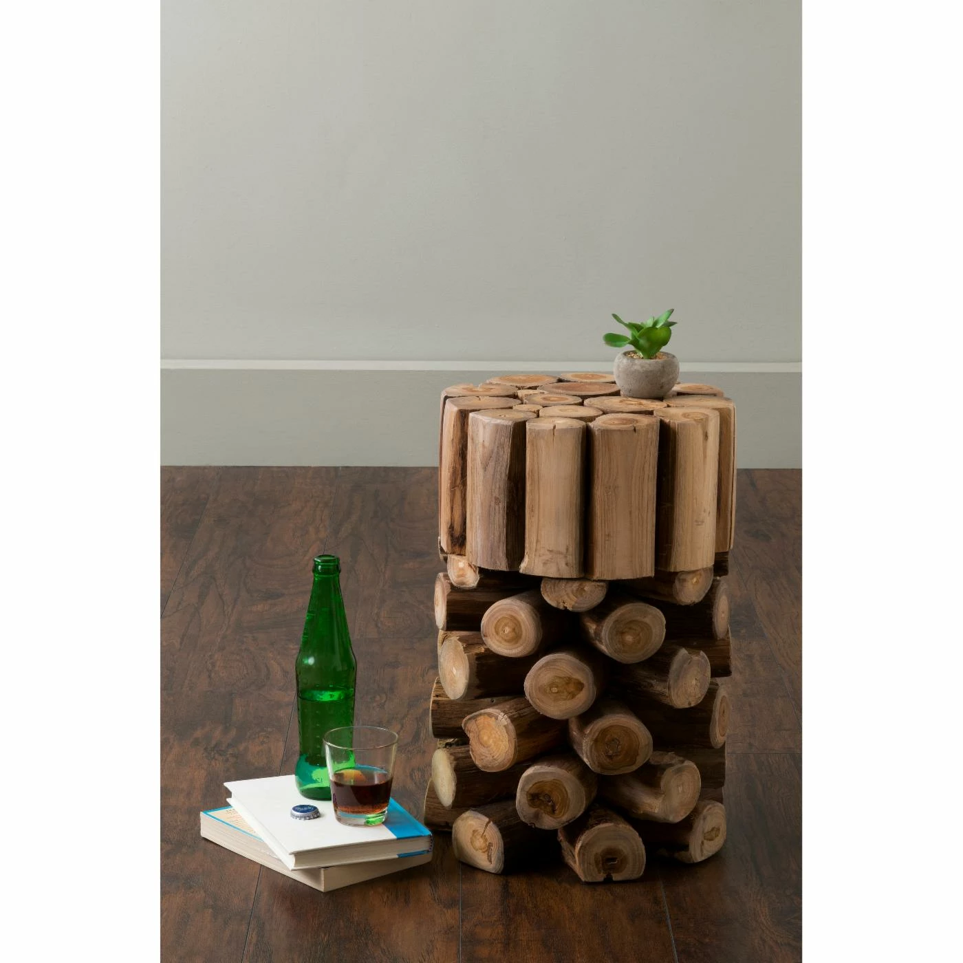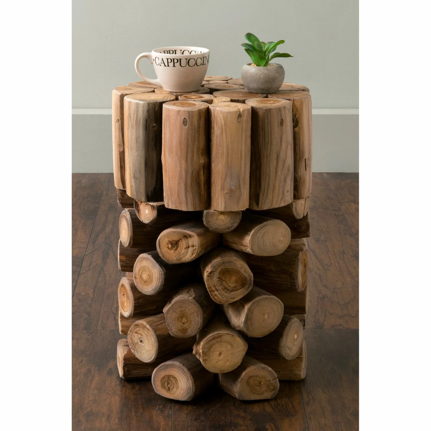 The East At Main Hansell Round Teakwood Accent Table is an eco-friendly masterpiece with its strikingly rustic structure. It’s made up of strategically stacked teakwood logs. The natural brown finish adds to the unadorned appeal. This accent table can also be used as a stool for an extra sitting spot in your home.