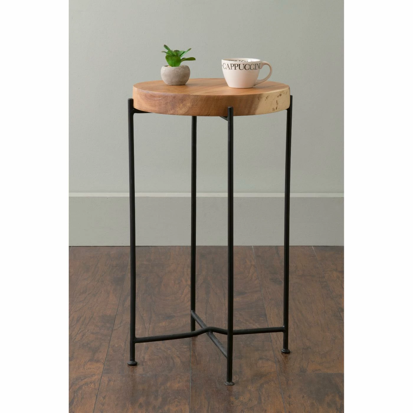 The East At Main Rico Round Teakwood Accent Table is simple design at its finest. A round solid teak wood top features a natural finish, allowing the wood grain to show through. The black metal base provides beautiful contrast in material and finish. Choose from available sizes. Made of eco-friendly materials.
