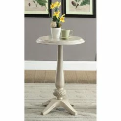 The vintage style of the Furniture of America Thistle Vintage Round Side Table makes it a chic addition to any room. Its classic, teardrop pedestal design features intricate carvings that elevate the design of the piece. Crafted from robust wood and with your choice of available colors, you’ll have no trouble complementing your existing furnishings.