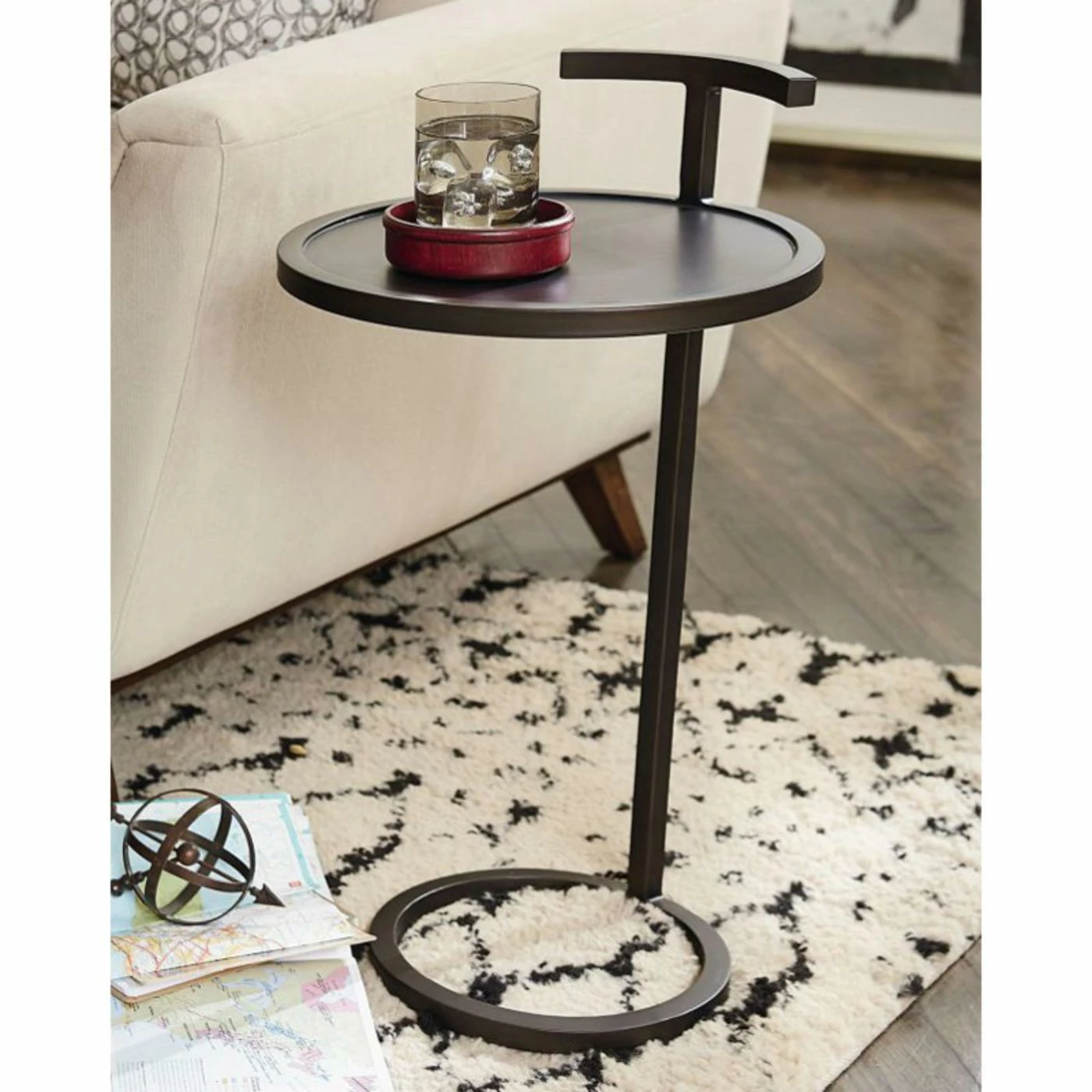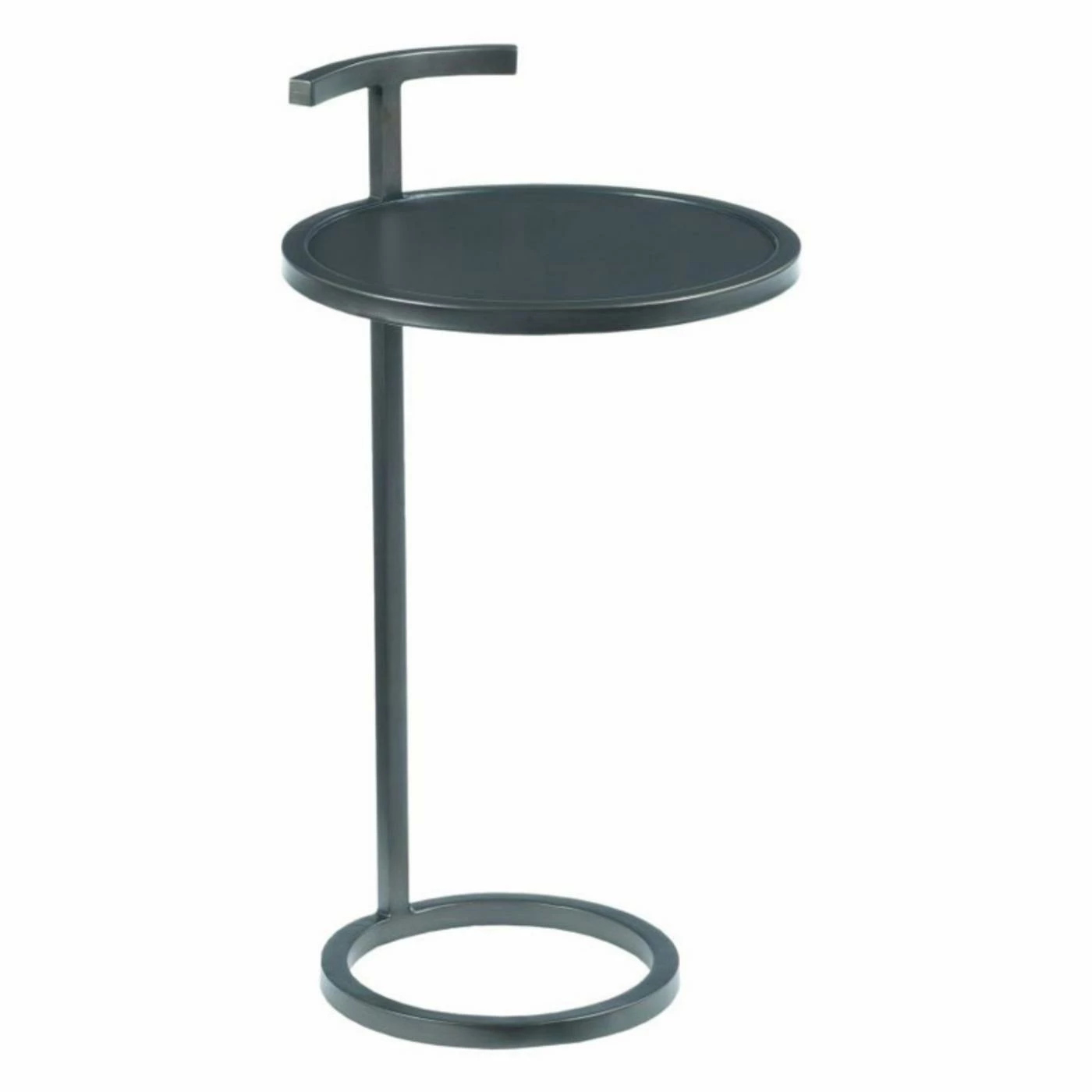 Accessorize your living room or bedroom in contemporary style by featuring the Hammary Hidden Treasures Accent Round Side Table. This round accent table is crafted from metal for incredible durability. The chic black finish complements a wide range of styles while adding depth to this modern piece. The shape of the open circle base is repeated with the solid tabletop. Place this table next to your favorite armchair and always have a convenient place to rest a drink, book, or other items.