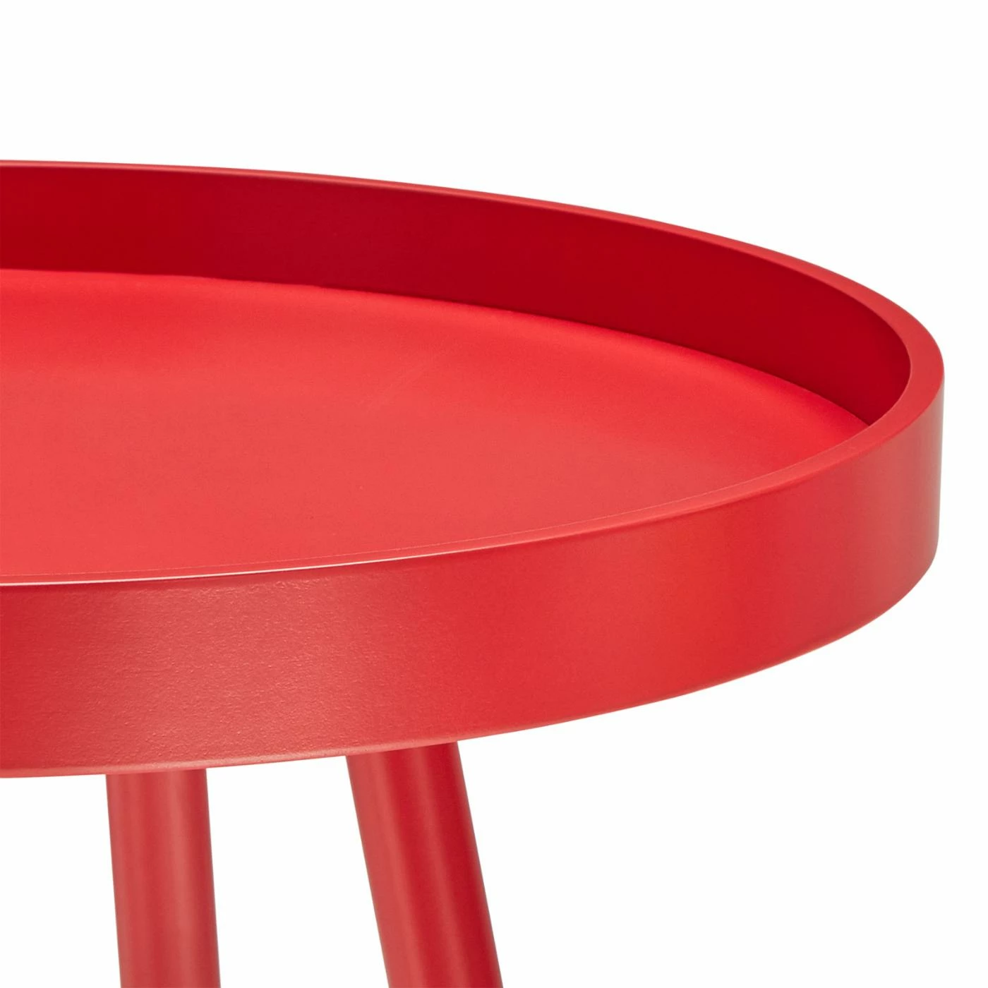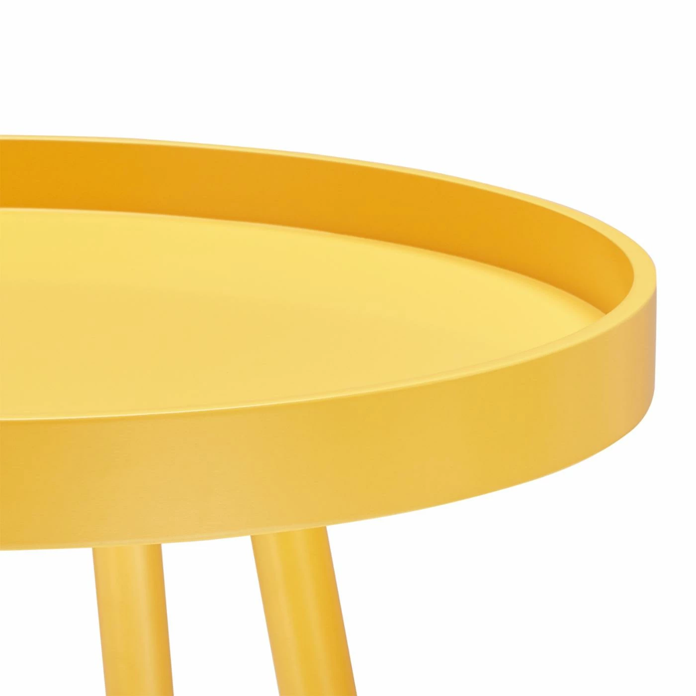 Cleverly add color to any contemporary room with the HN Home Gruen Mid-Century Modern Round Tray End Table. Dapper dowel legs feature unfinished feet for a touch of contrast. The tray top of this round table creates a catchment for books, drinks, a lamp, or display items, allowing you to create a scene that expresses your personal vision.