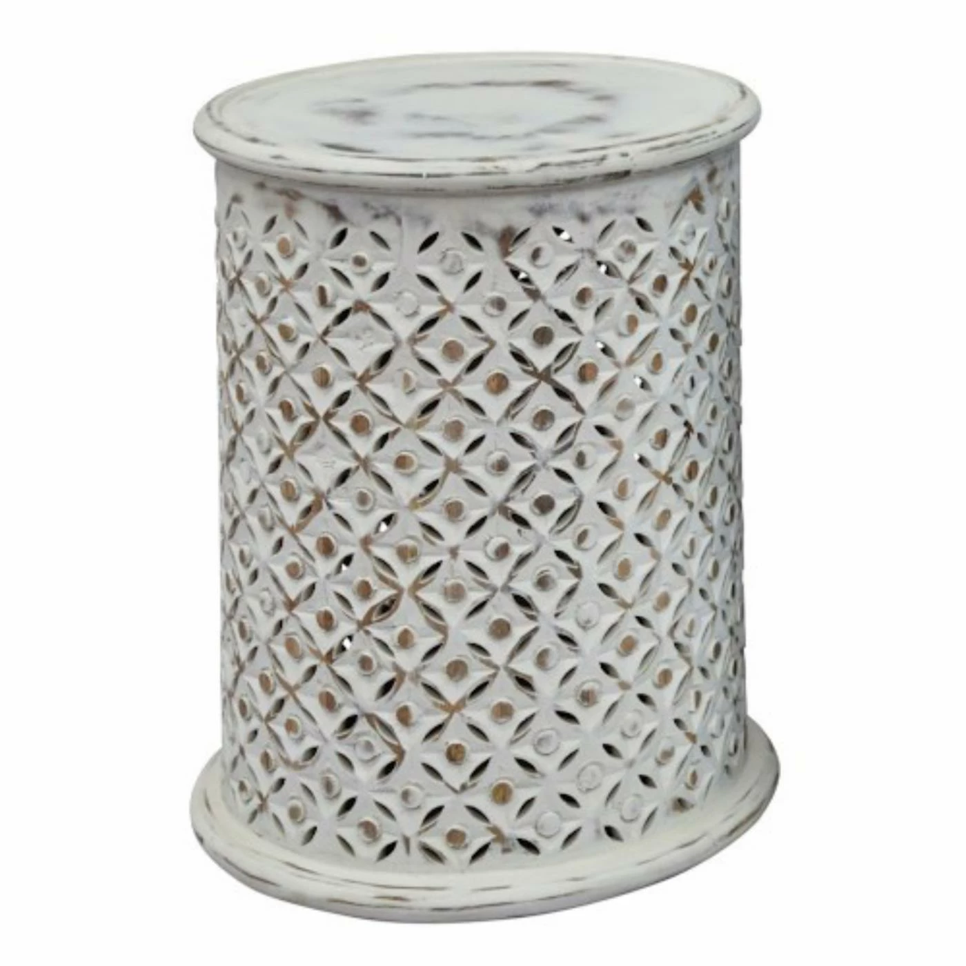 Weathered finish options and perforated details give the Jofran Global Archive Drum Table its global appeal. This handcrafted drum table is made of solid mango for durability. At 17 inches across and 23 inches tall, this table is scaled to fit nearly anywhere.