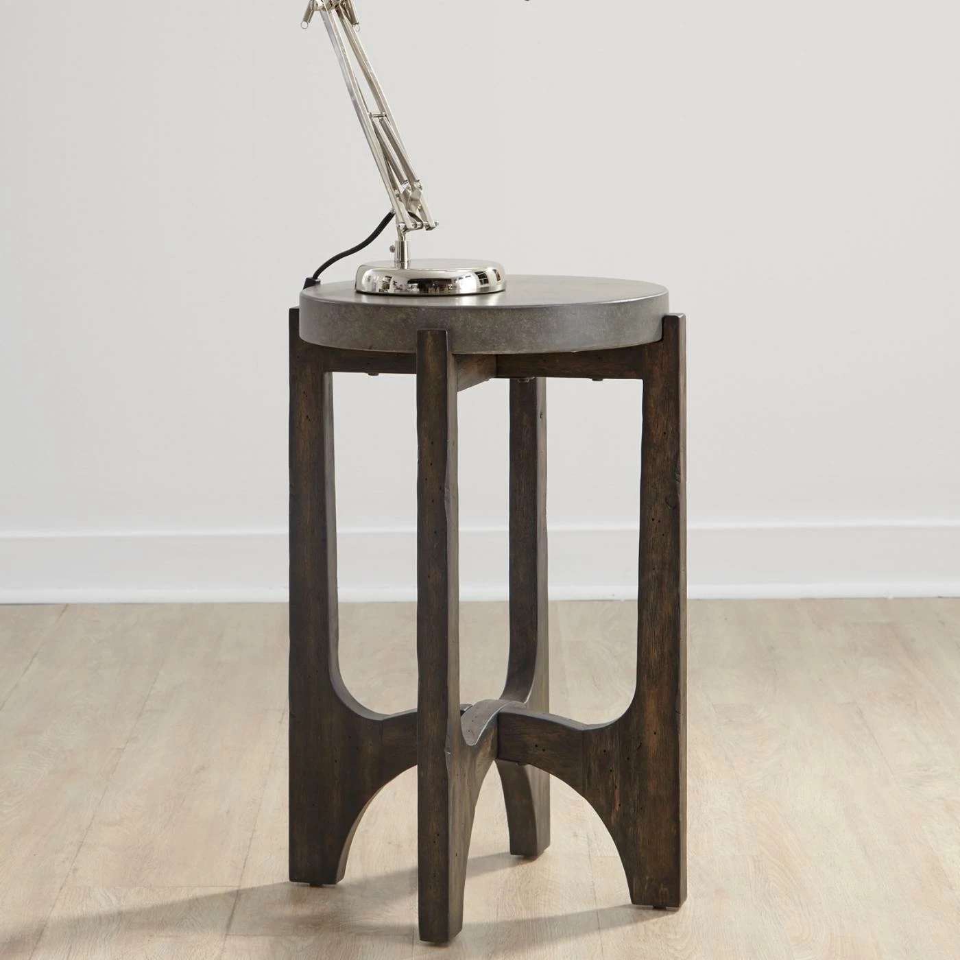 The Liberty Furniture Industries Cascade Chair Side Table delivers a contemporary accent to your home. Perfect for the den or living room, this side table can be added next to a chair or sofa as a place to set books, lamps, or decorative items. Its round tabletop is made with composite concrete for a chic urban aesthetic, while its eucalyptus wood frame features a visually intriguing design of interlocking curved shapes.