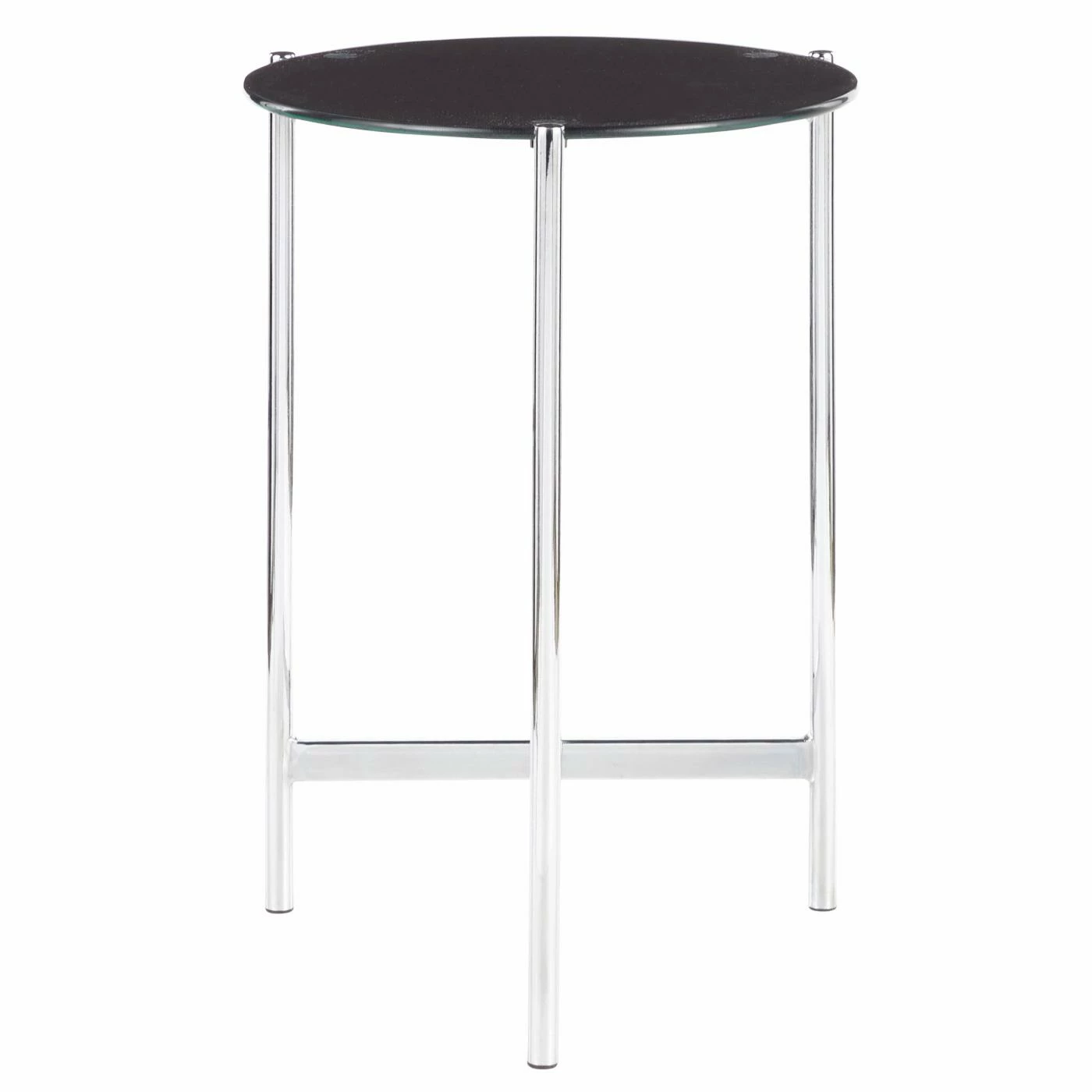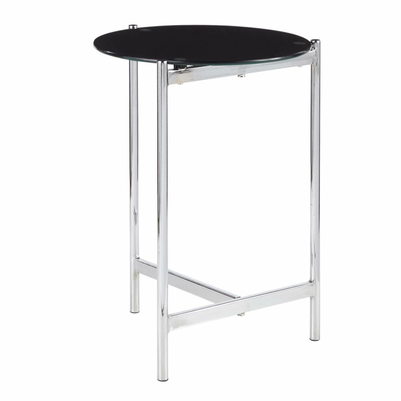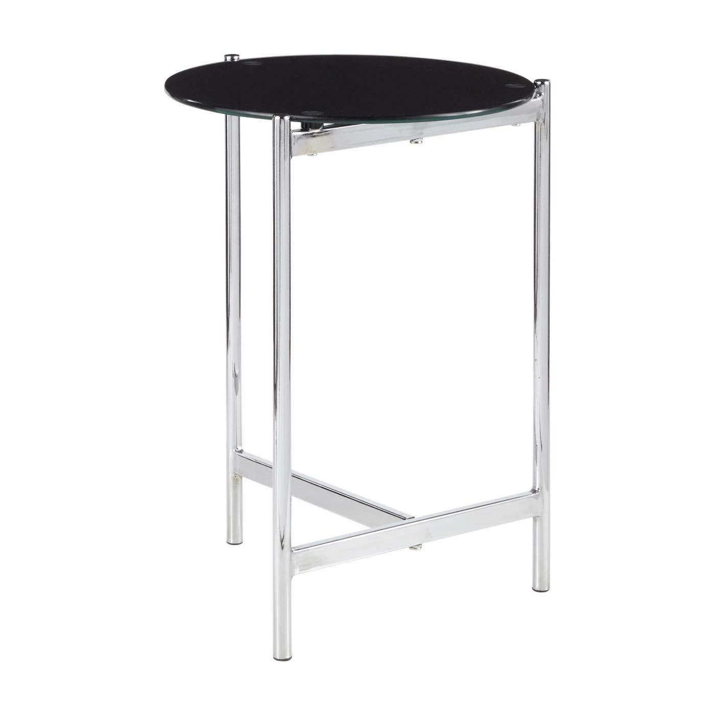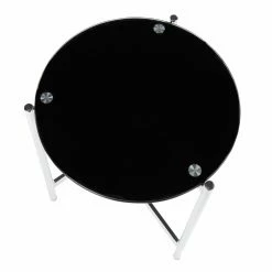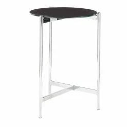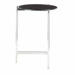 Give your sofa a contemporary companion with the LumiSource Chloe Contemporary Side Table with Black Glass Table Top. This side table features a slim steel base in a chrome finish. The round glass tabletop is covered with a black painted finish. For a coordinated look in your living space, pair this end table with the LumiSource Chloe Contemporary Coffee Table with Glass Table Top.