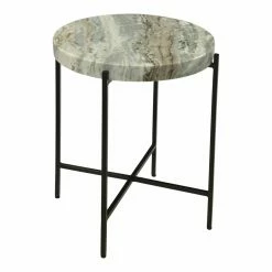 For a side table that’s easy to match and easier to style, try the Moes Home Collection Cirque Accent Table. This table combines the look of natural sandy marble with sleek tall iron legs, connected with perpendicular angles. The black metal frame nicely contrasts the light marble top and creates a streamlined, contemporary look that goes perfectly with bright and confident senses of style. Put this piece next to your bed or sofa and place a lamp or your favorite potted plant on top. No assembly is required.