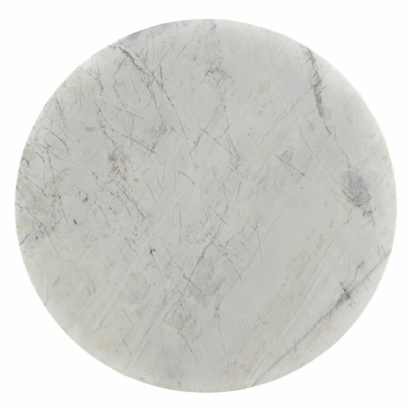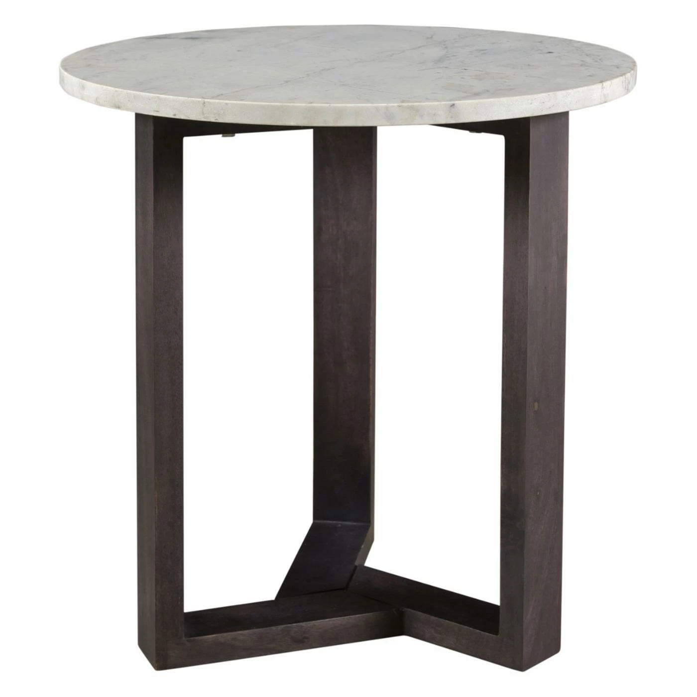 The Moes Home Collection Jinxx 20 in. Side Table proves that accent furniture can still be show-stoppers. Crafted with a solid Acacia wood frame in a rich brown finish, this table features an eye-catching geometric base and a white satwaria marble top with a unique marble vein that varies from table to table.